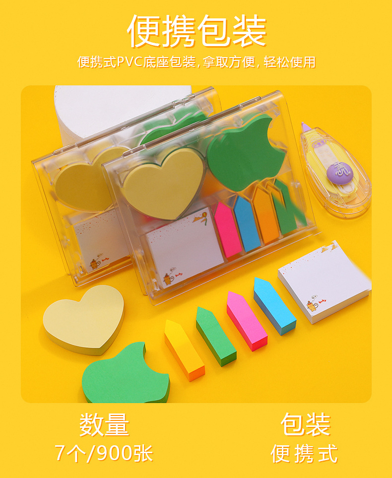 Supplied in a clear plastic case, this set of sticky notes comes with 7 pads as shown in the photos, including