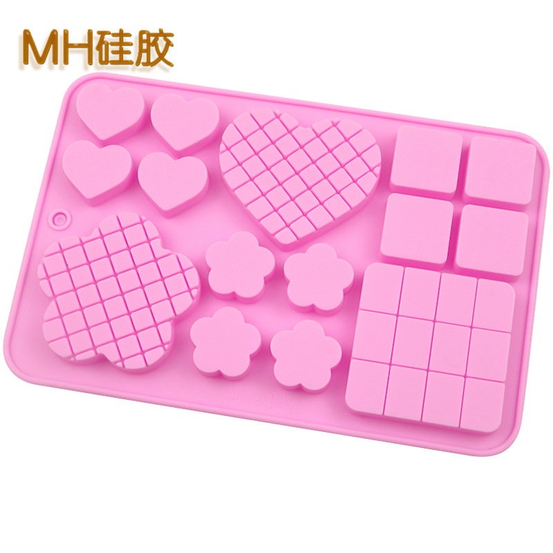 Hearts Flowers Pink Silicone Mould Chocolate Fondant Jelly Ice Cube Mold