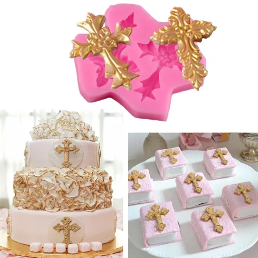 Holly Communion Cross Silicone Sugarcraft Mould Cake Topper Baking Decor Mold