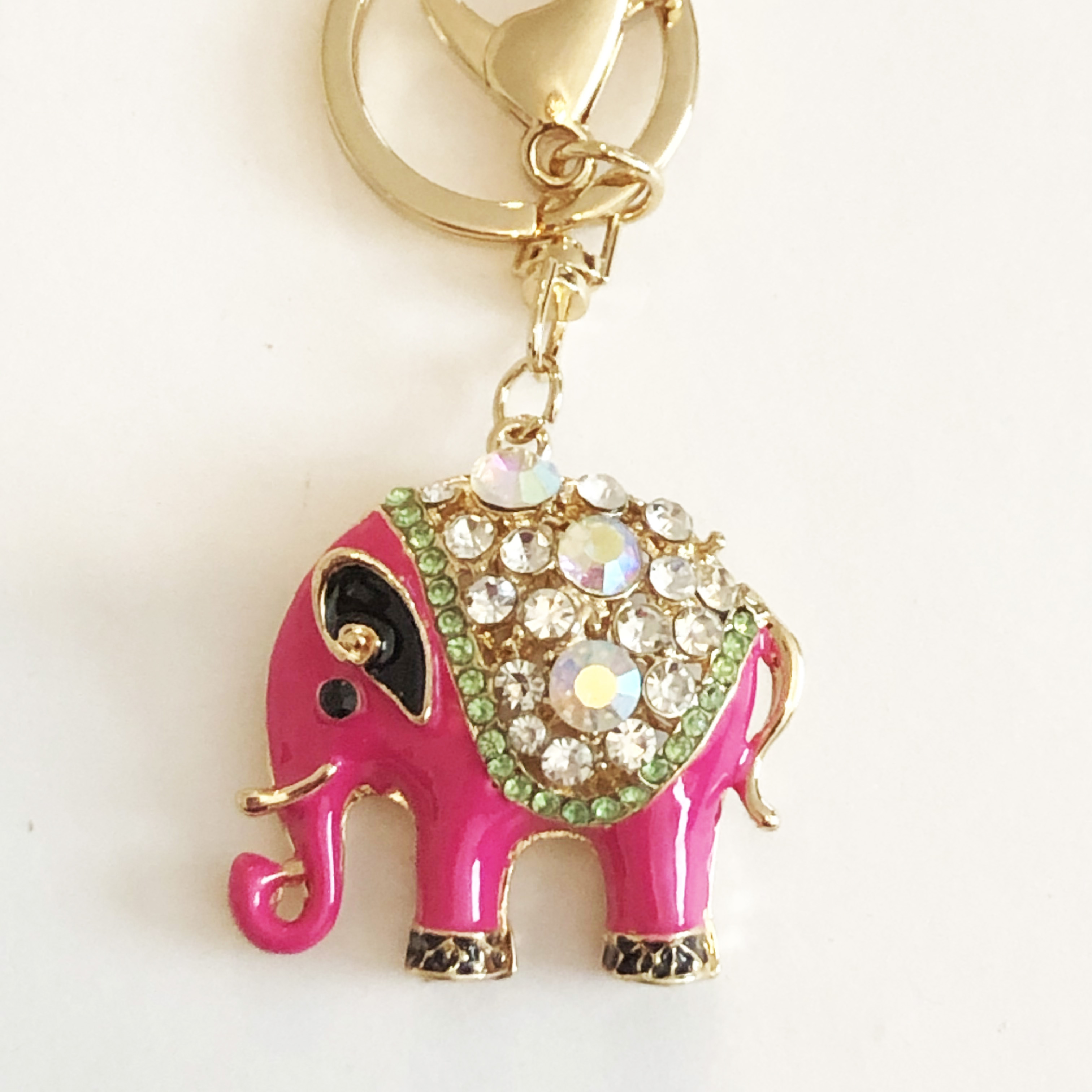 Indian Style Elephant Crystal Diamante Bag Charms Handbag Keyrings Pendant
