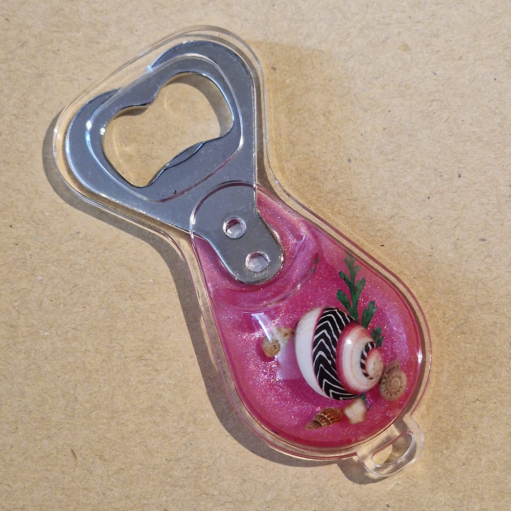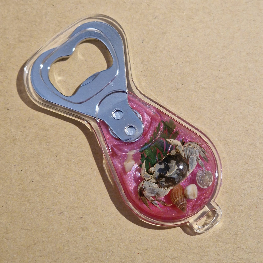 All keyrings and bottle openers glow in the dark, except for "Crab A on Magnetic Bottle Opener" and "Snail on Magnetic Bottle Opener".