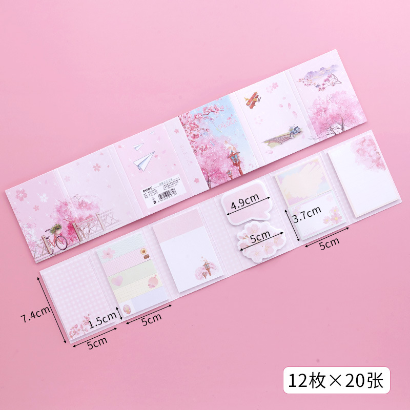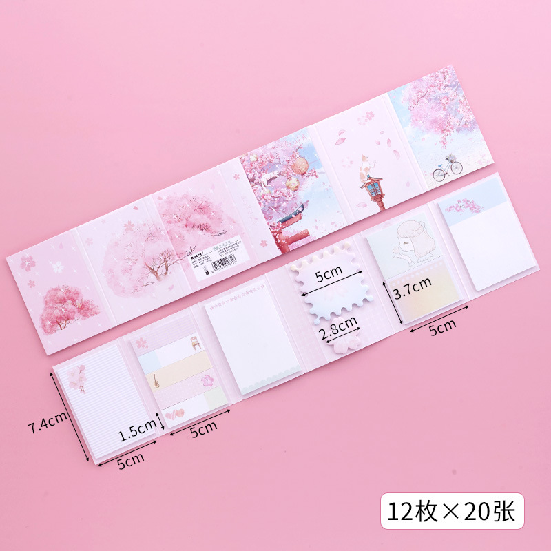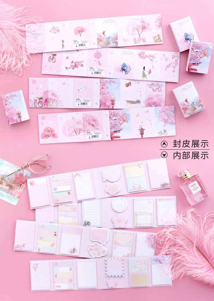 Japanese Pink Cherry Blossoms Girl Cat Sticky Notes Pad Bookmark Page Markers