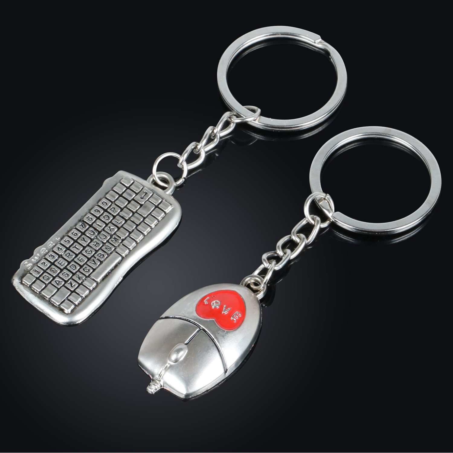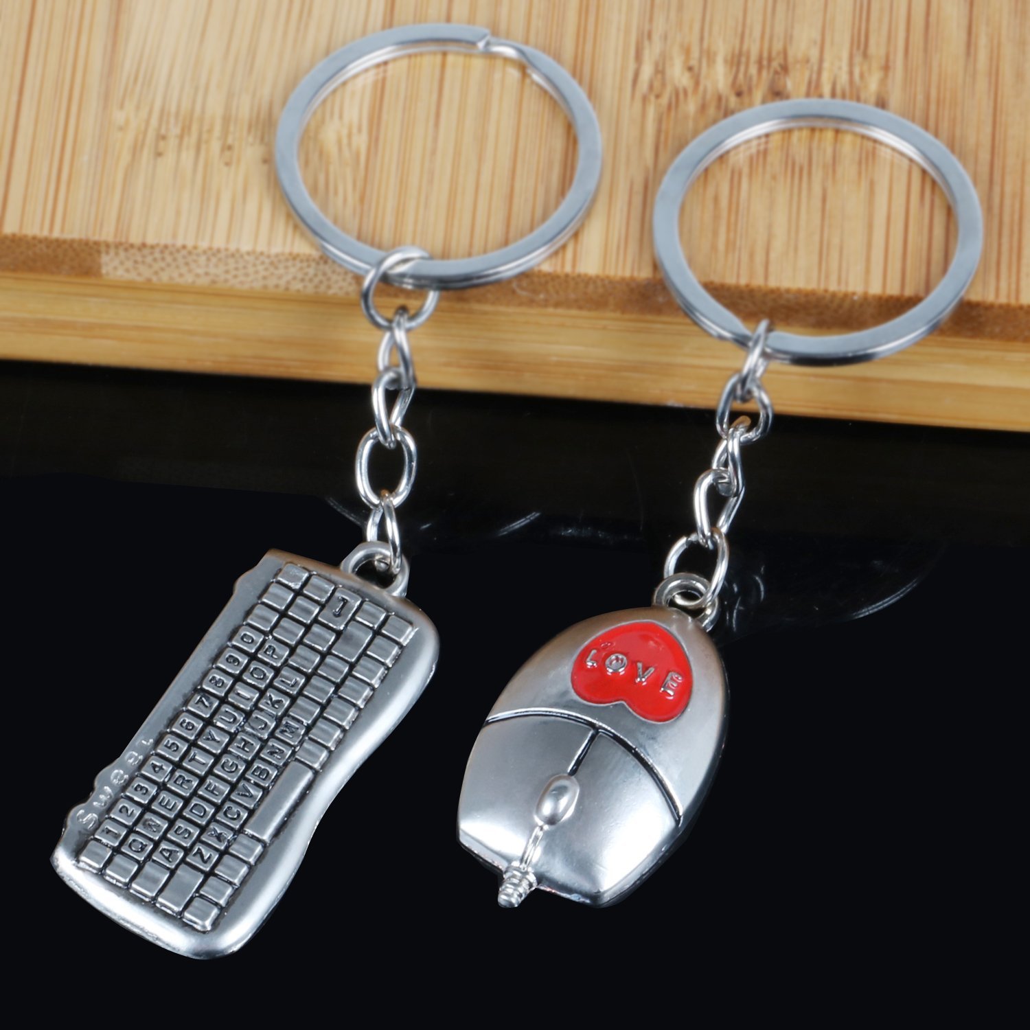 Keyboard Mouse Love Heart Silver Metal Couple Keyrings Lovers Puzzle Key Chains