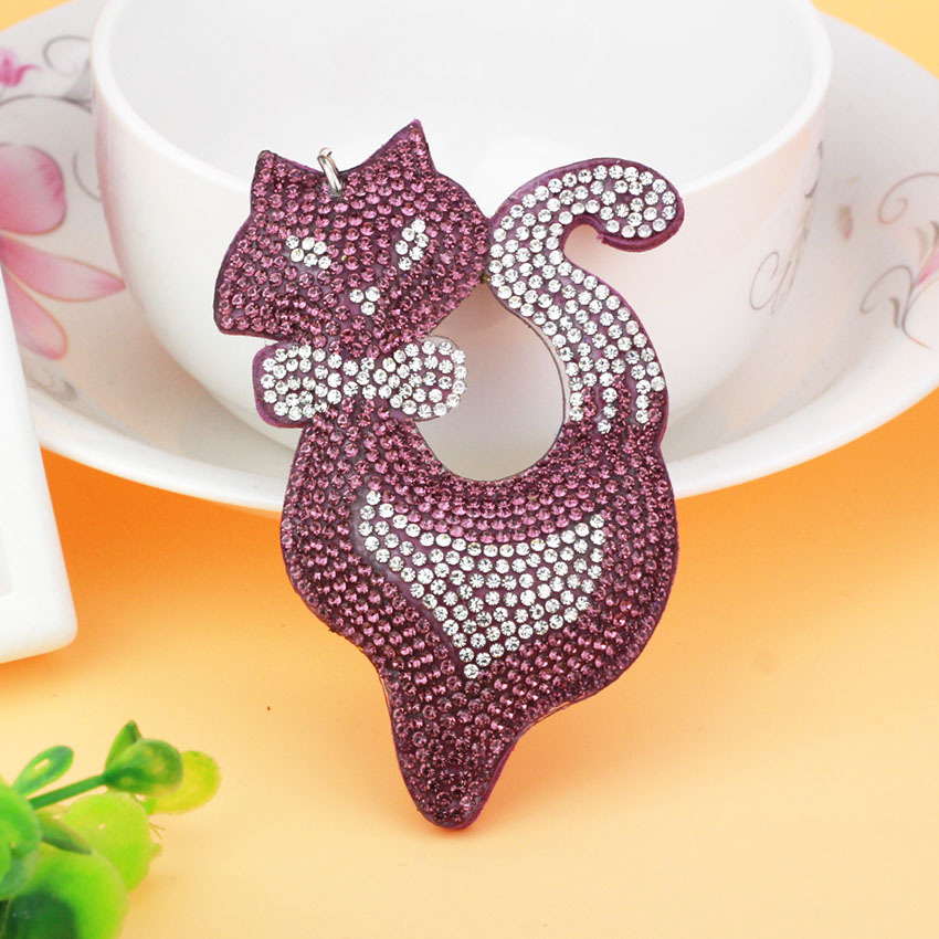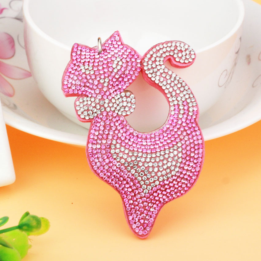 Kitten Cat Shape PU Leather Crystal Diamante Bag Charm Handbag Keyring Pendant