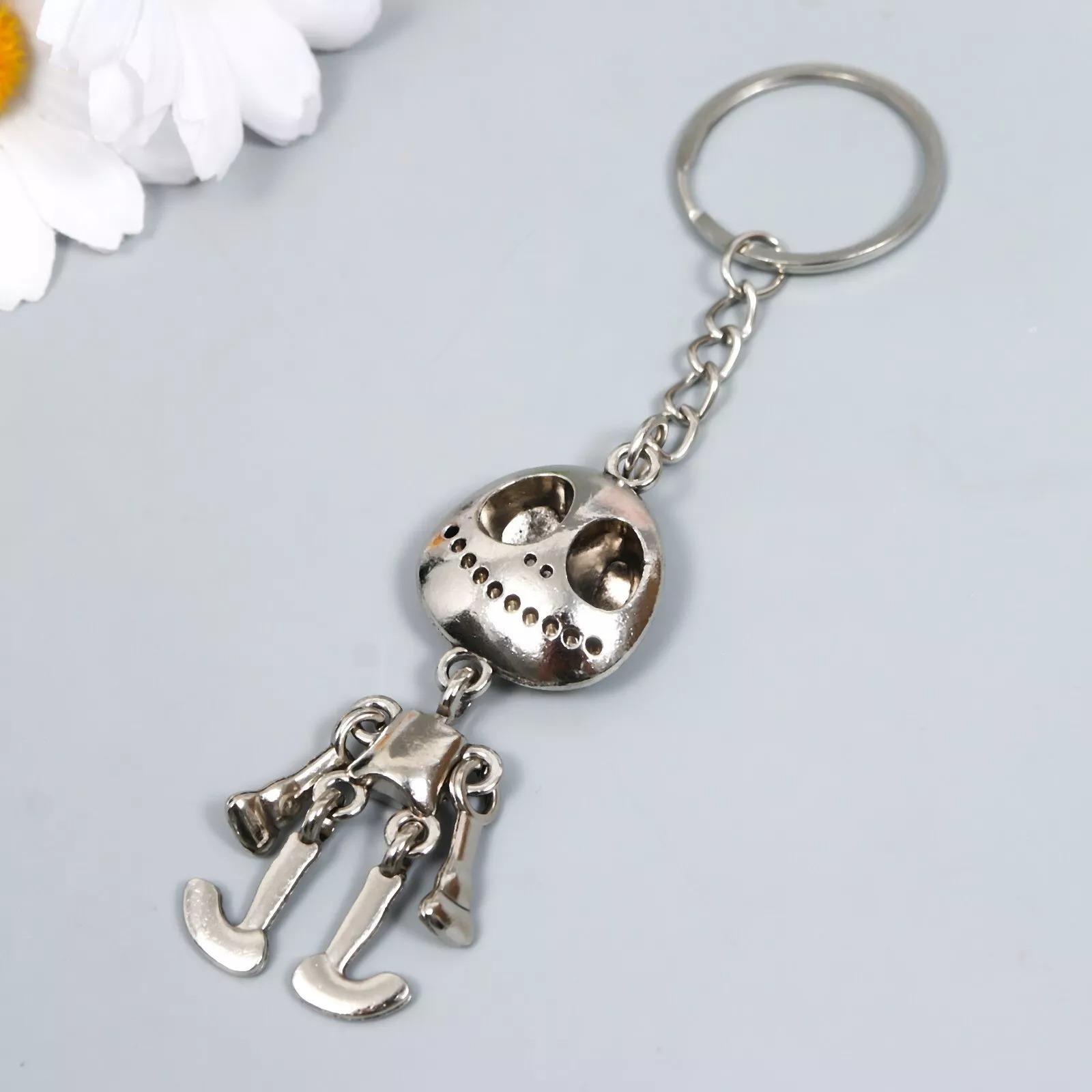 Large Skeleton Skull Retro Style Silver Metal Keyring Cool Halloween Gift