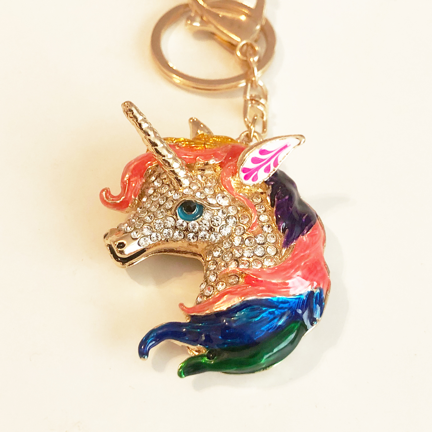 Large Unicorn Crystal Diamante Bag Charms Handbag Keyrings Pendant Key Chain