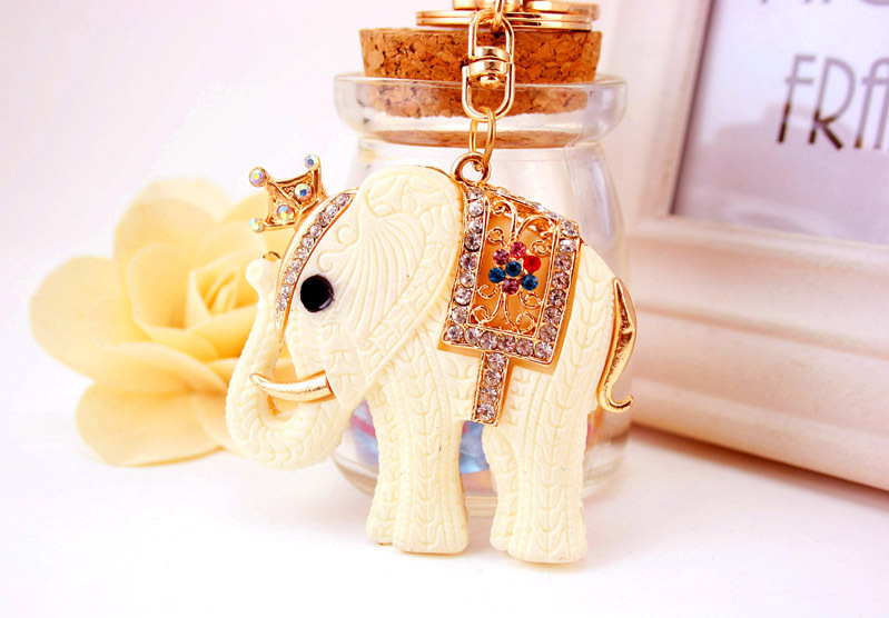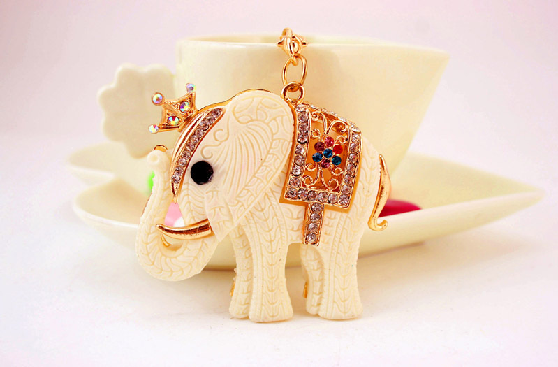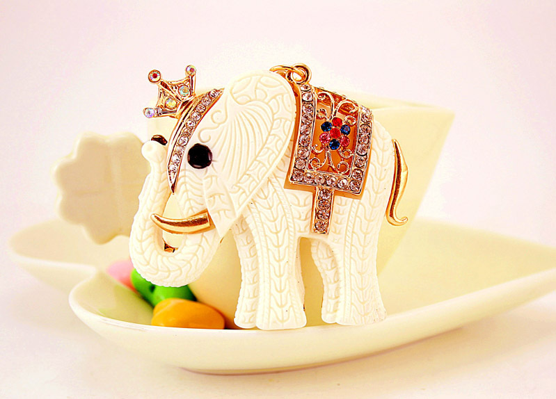 Large fashion handbag charm in the lovely design of a white elephant.