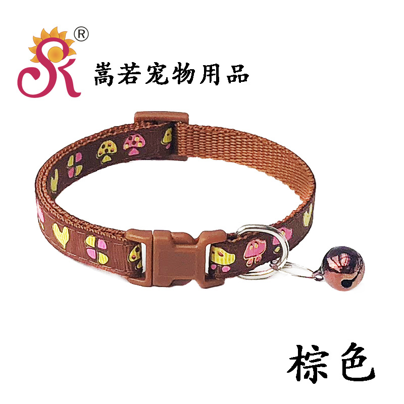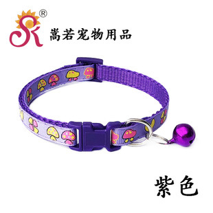 Love Hearts Flowers Mushroom Adjustable Kitten Cat Collar With Bell Snap Buckle
