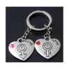Silver metal couple keyrings / lovers puzzle key chains in love hearts with engraved gender symbols design, are novelty and unique gifts for boyfriend / girlfriend, couples, lovers and partners.