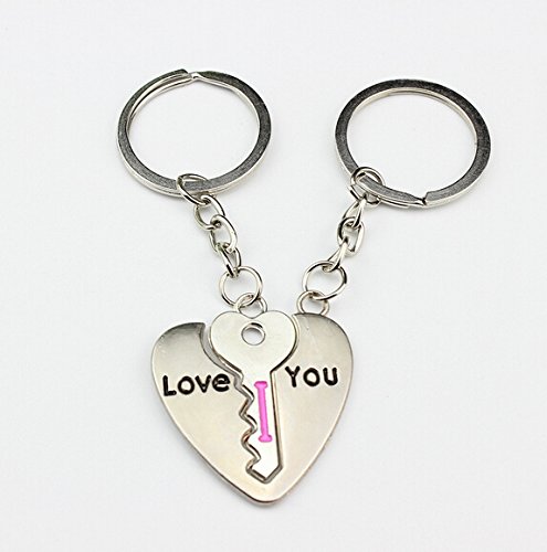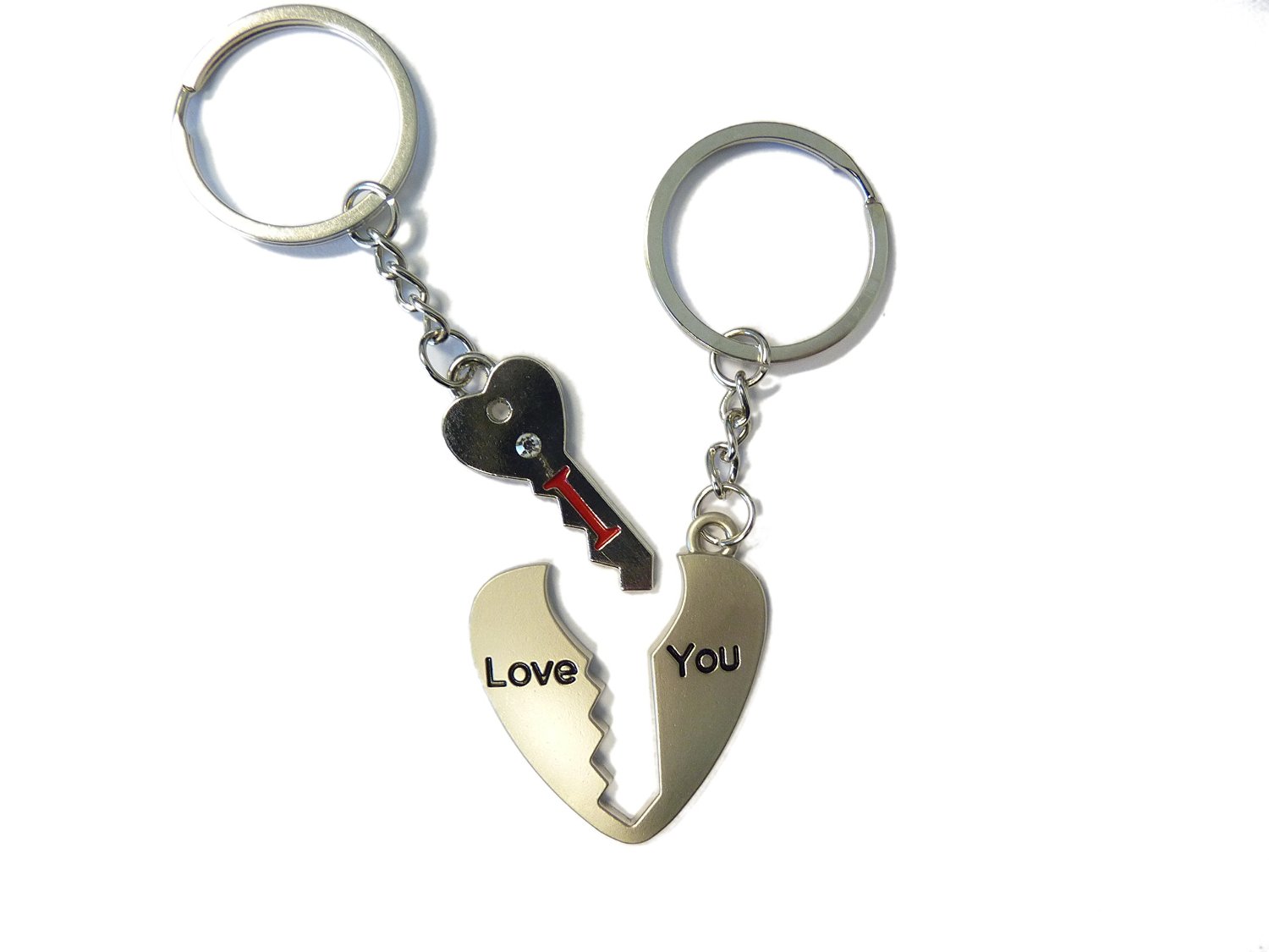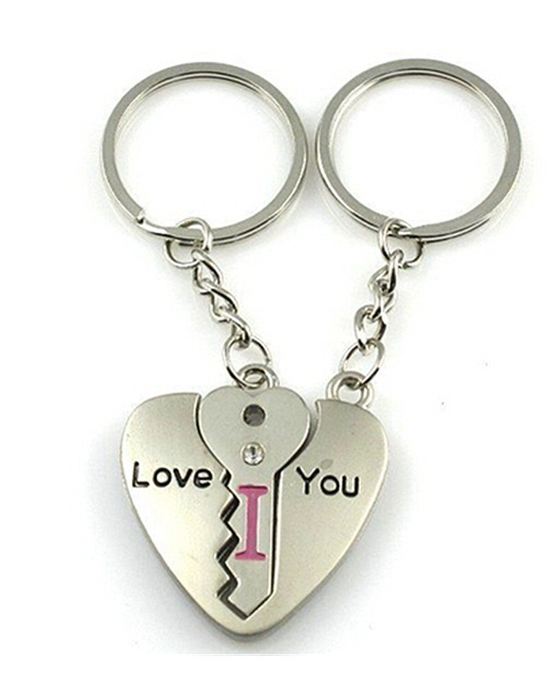 Love You Heart Key Engraved Silver Metal Couple Keyrings Lovers Puzzle Key Chains