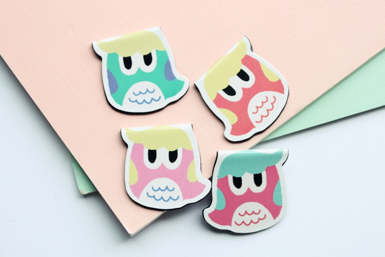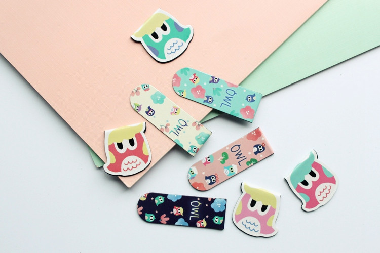 Cute black kitten cats and adorable owls magnetic bookmarks available in 8 different designs: 4 designs for black cats and 4 designs for owls as shown in the main photos.