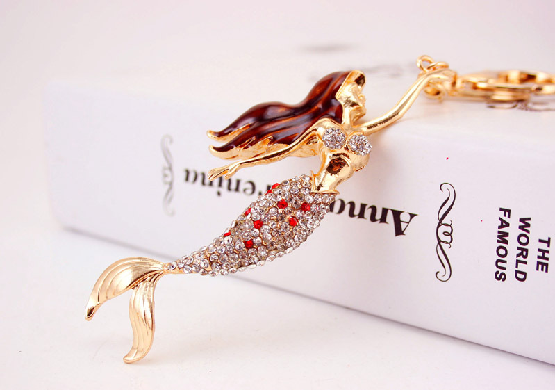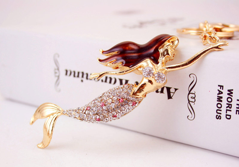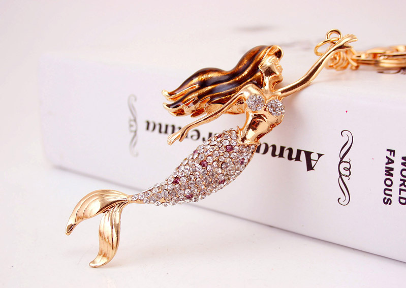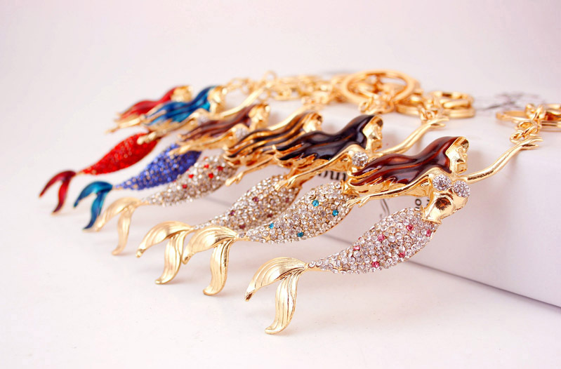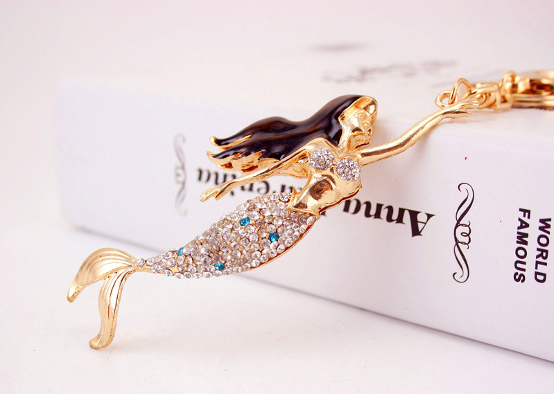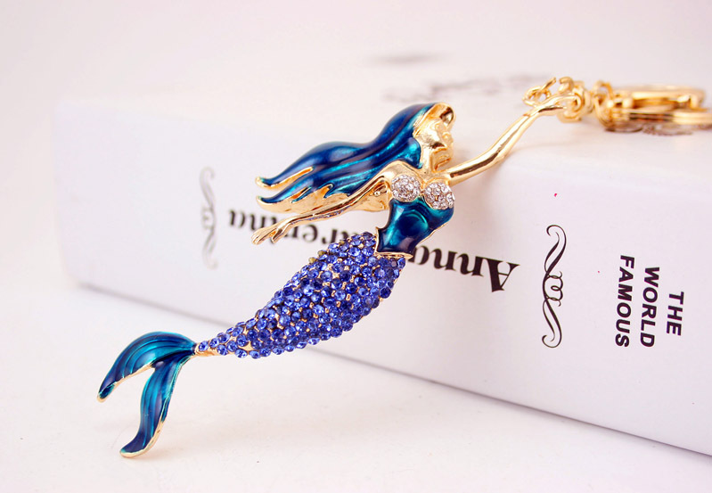 Mermaid Angel Fairy Crystal Diamante Bag Charms Handbag Women Keyrings Pendant