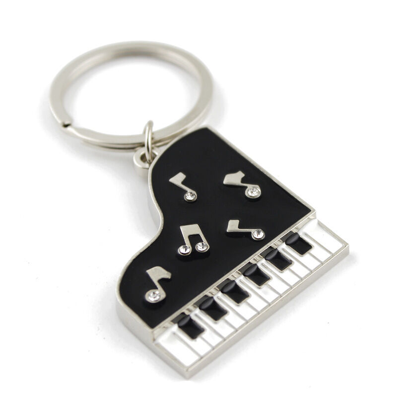 Music Note Piano Guitar Musical Instrument Silver Keyring Novelty Key Ring Gift