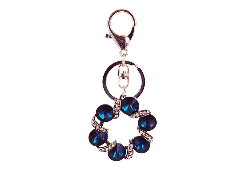 Navy Blue Flower Crystal Diamante Rhinestone Bag Charms Handbag Keyring Pendant