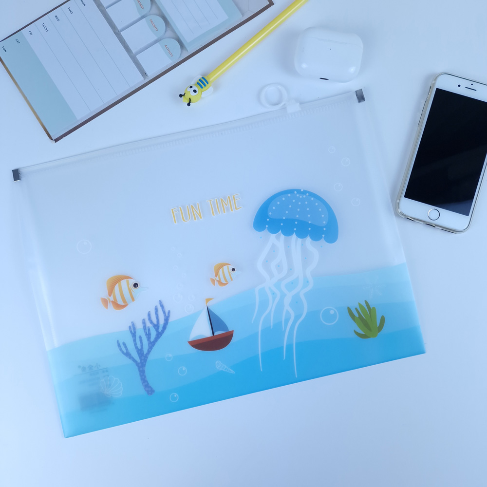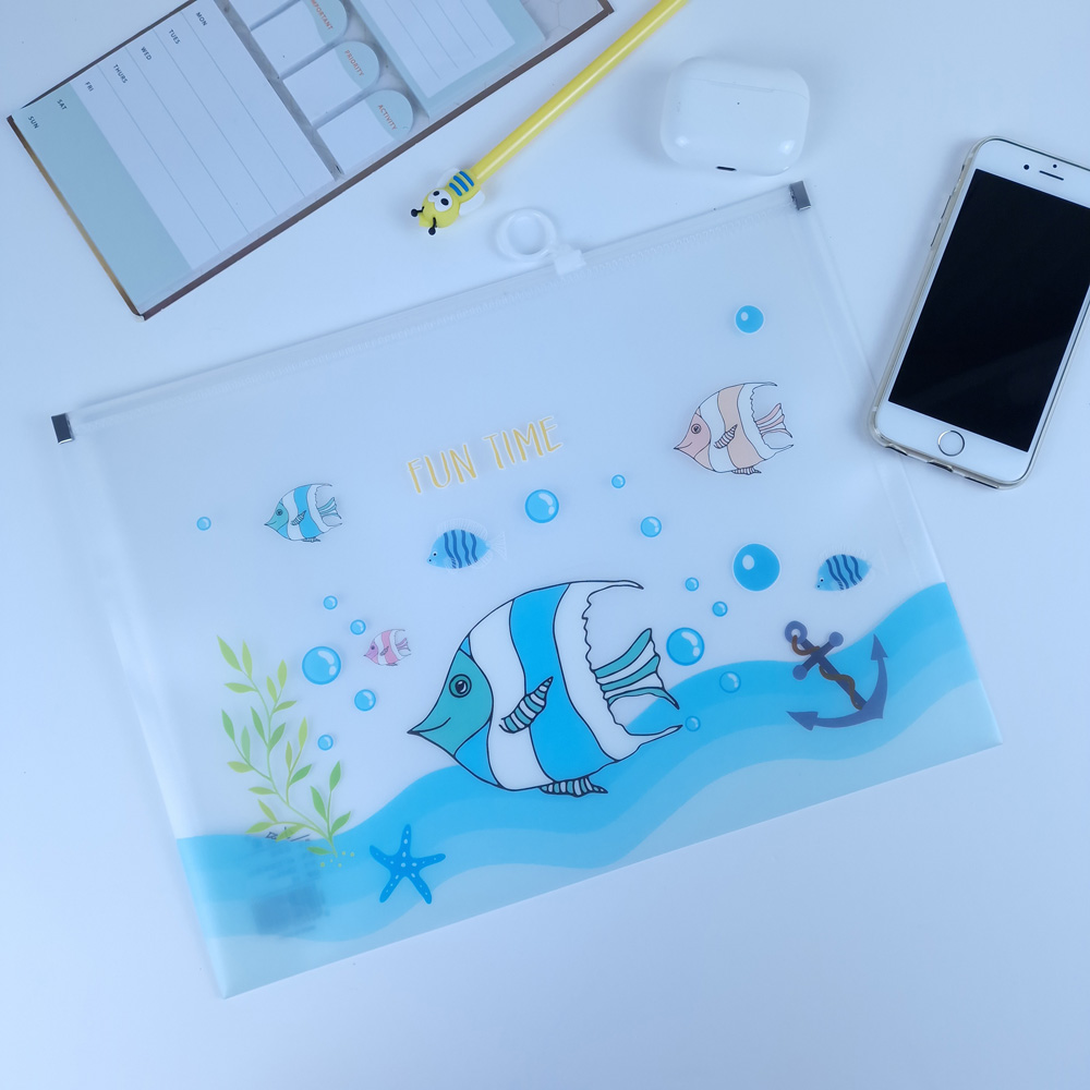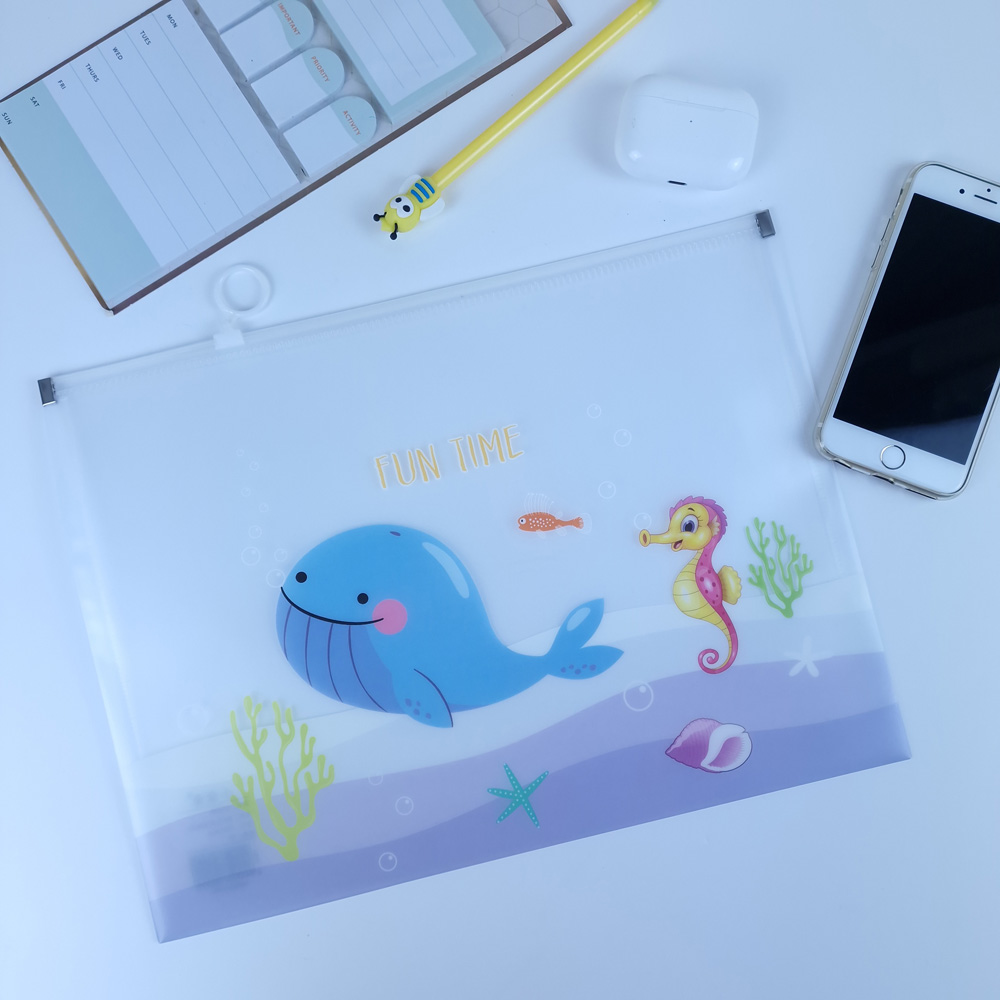 Ocean Animals Sea Fish Fashion A4 Plastic Document Wallets Zipper File Folders