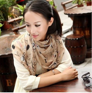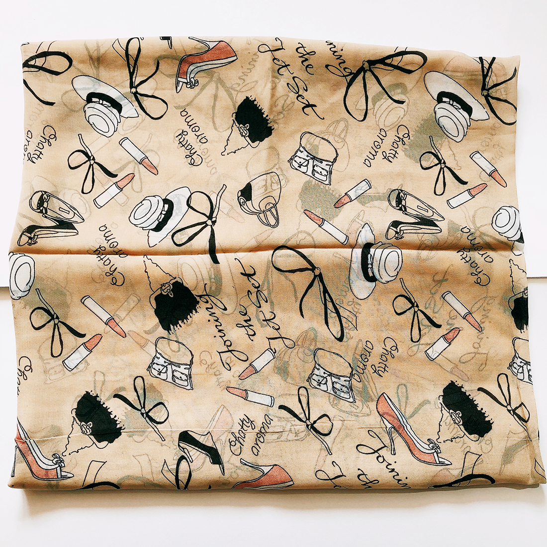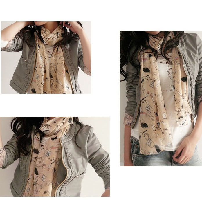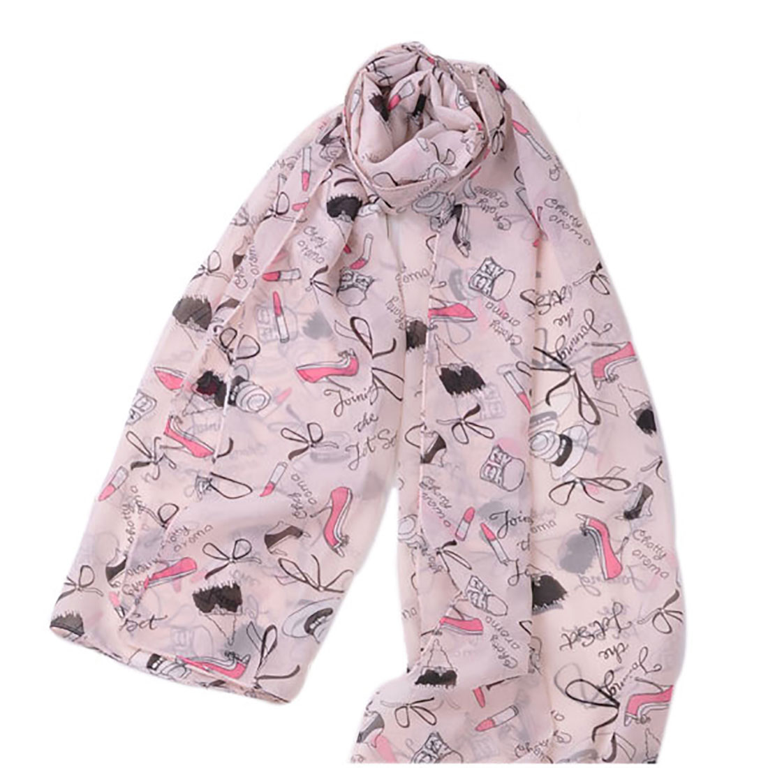 Pink Lipsticks High Heel Shoes Patterned Fashion Womens Scarves Chiffon Scarf