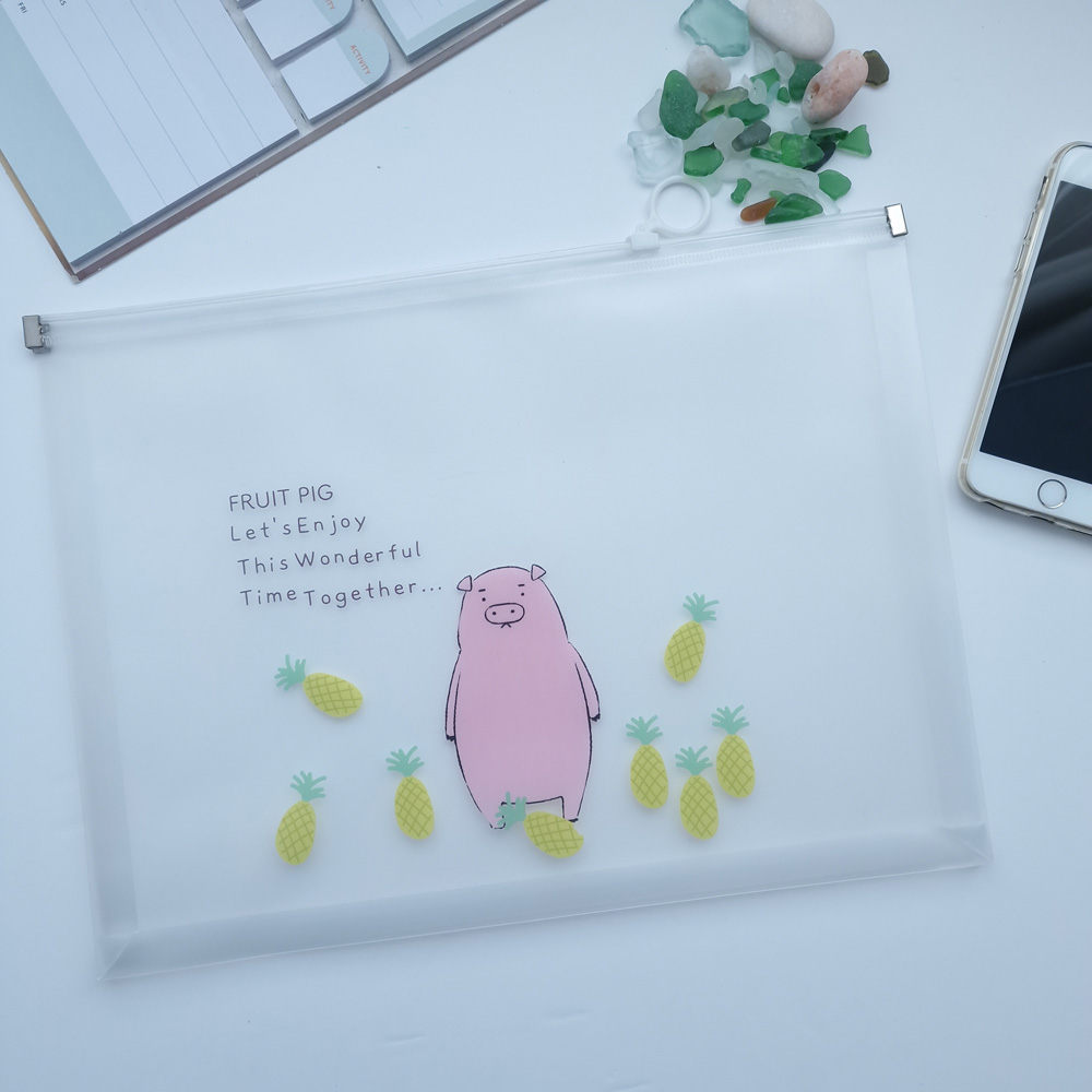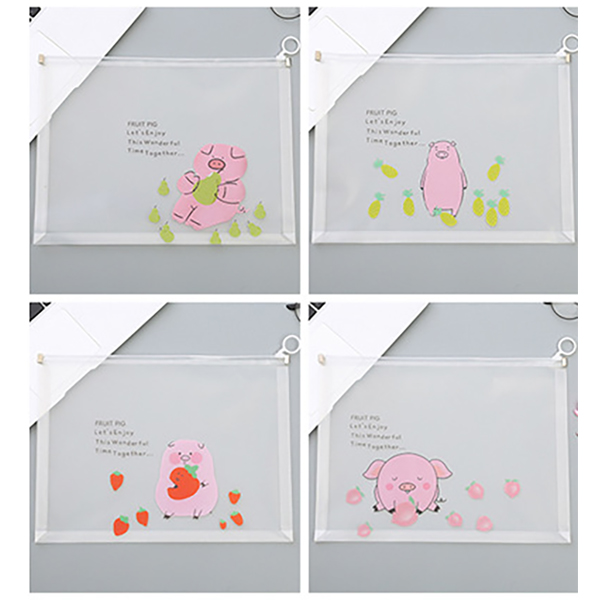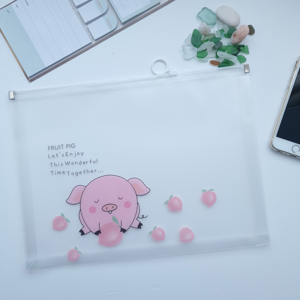 Details:Pink Piglets Fashion Animals A4 Plastic Document Wallets Zipper File Folder Zig Bags