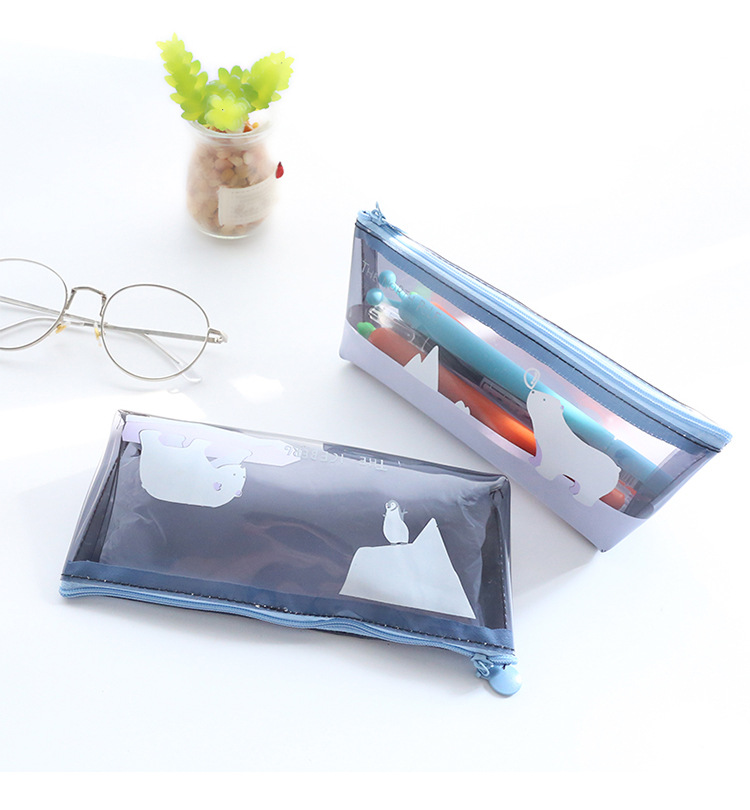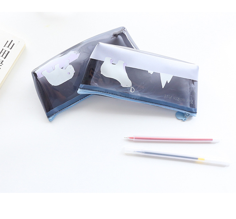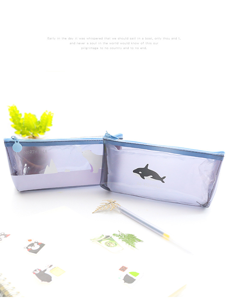 Details:Polar Animals Bear Penguins Whale Iceberg Plastic Pencil Cases Cosmetics Make Up Bags Pen Pouches