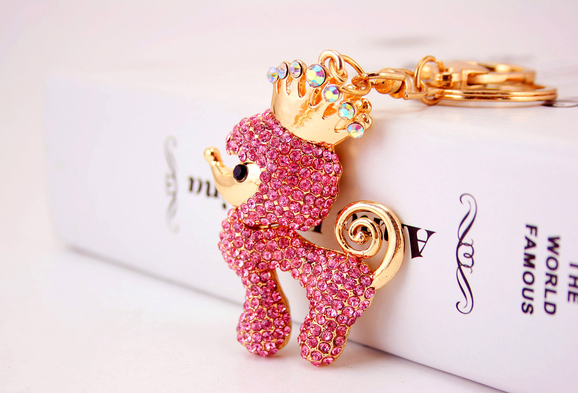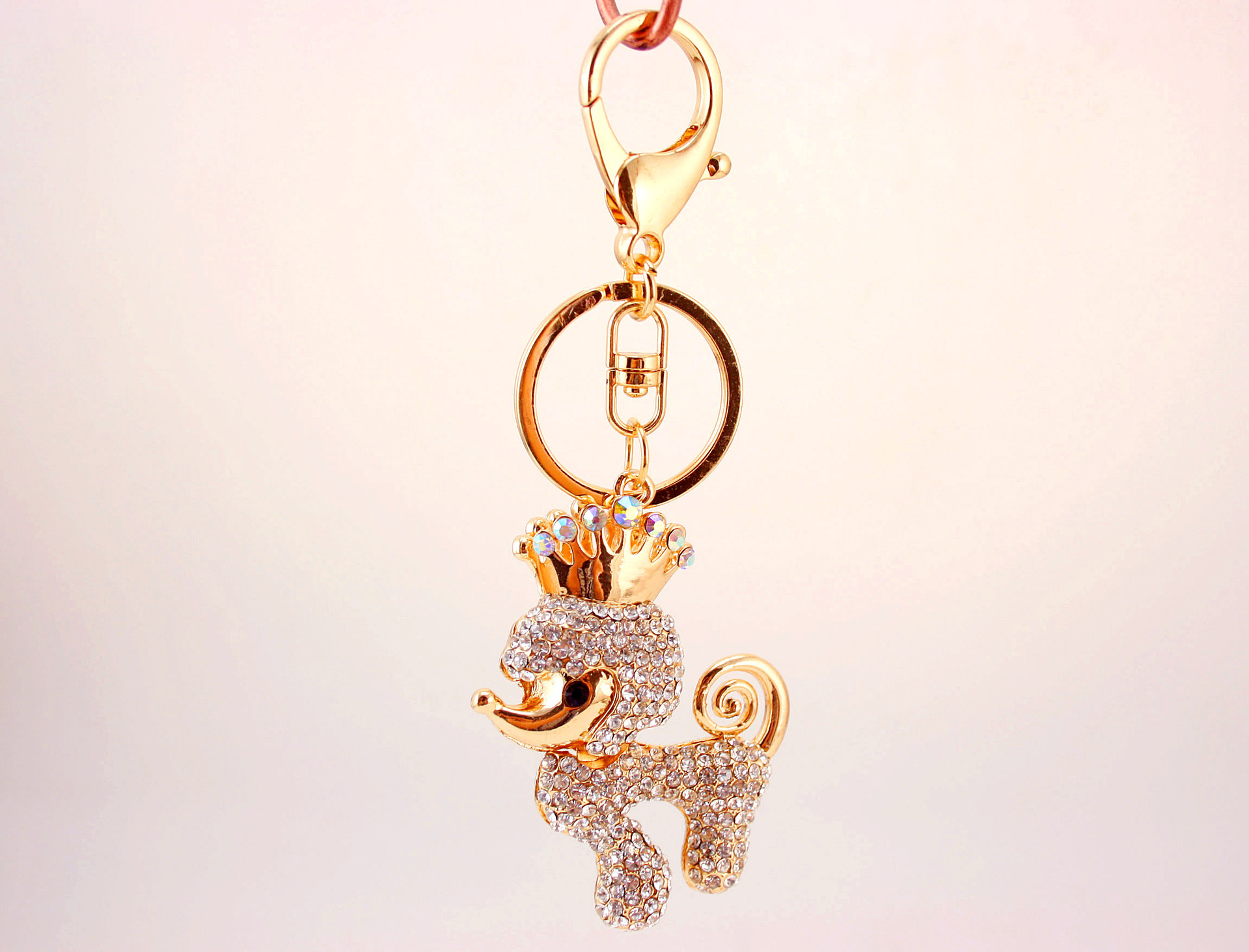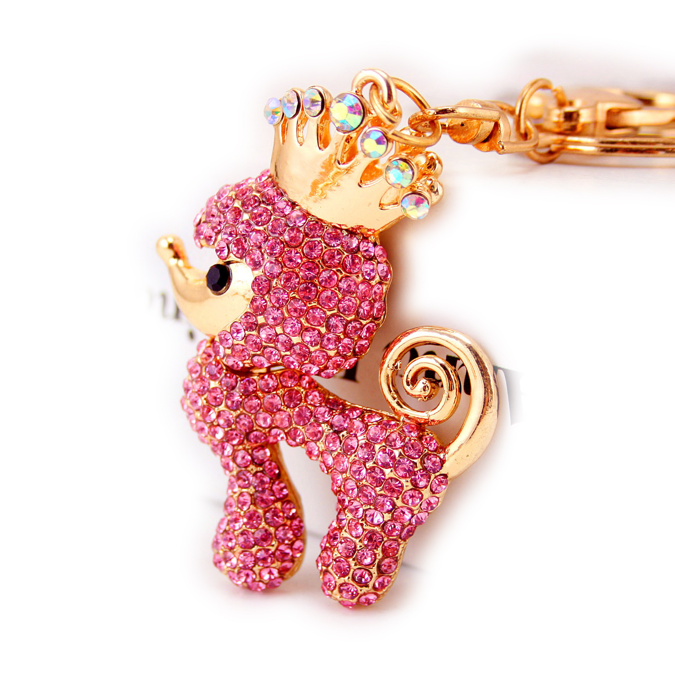 Poodle Dog Puppy Crystal Diamante Bag Charms Handbag Keyrings Pendant Key Chain