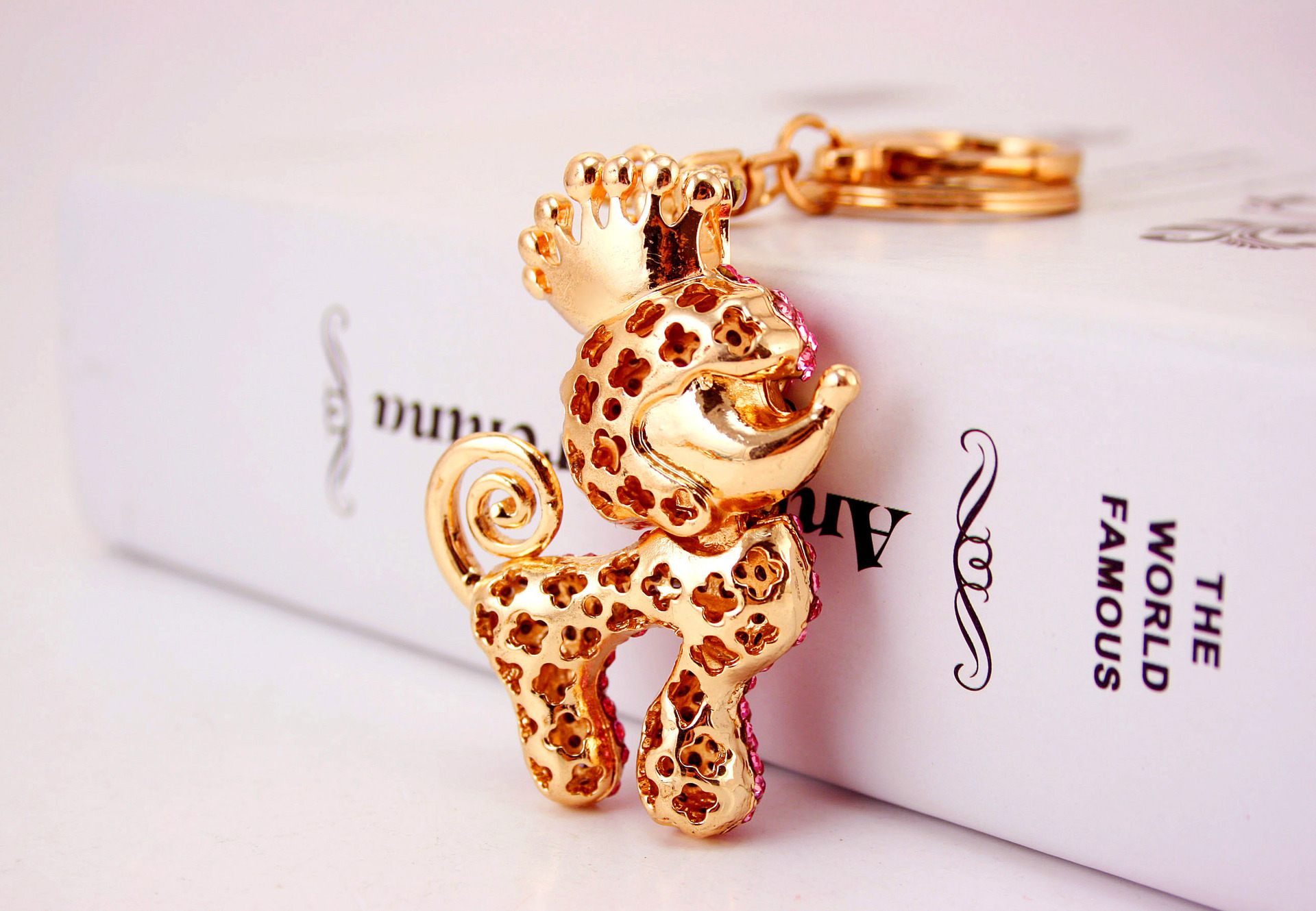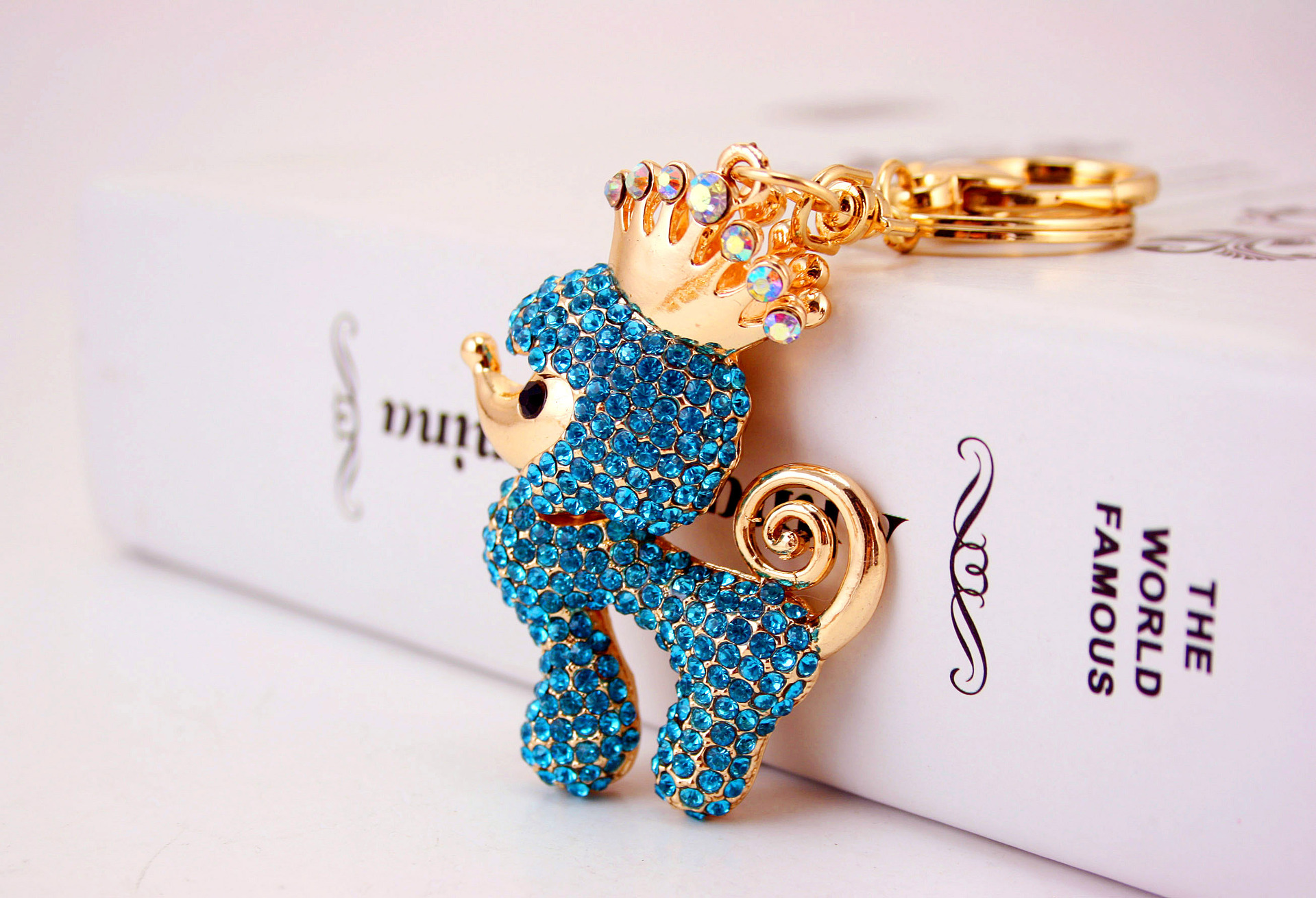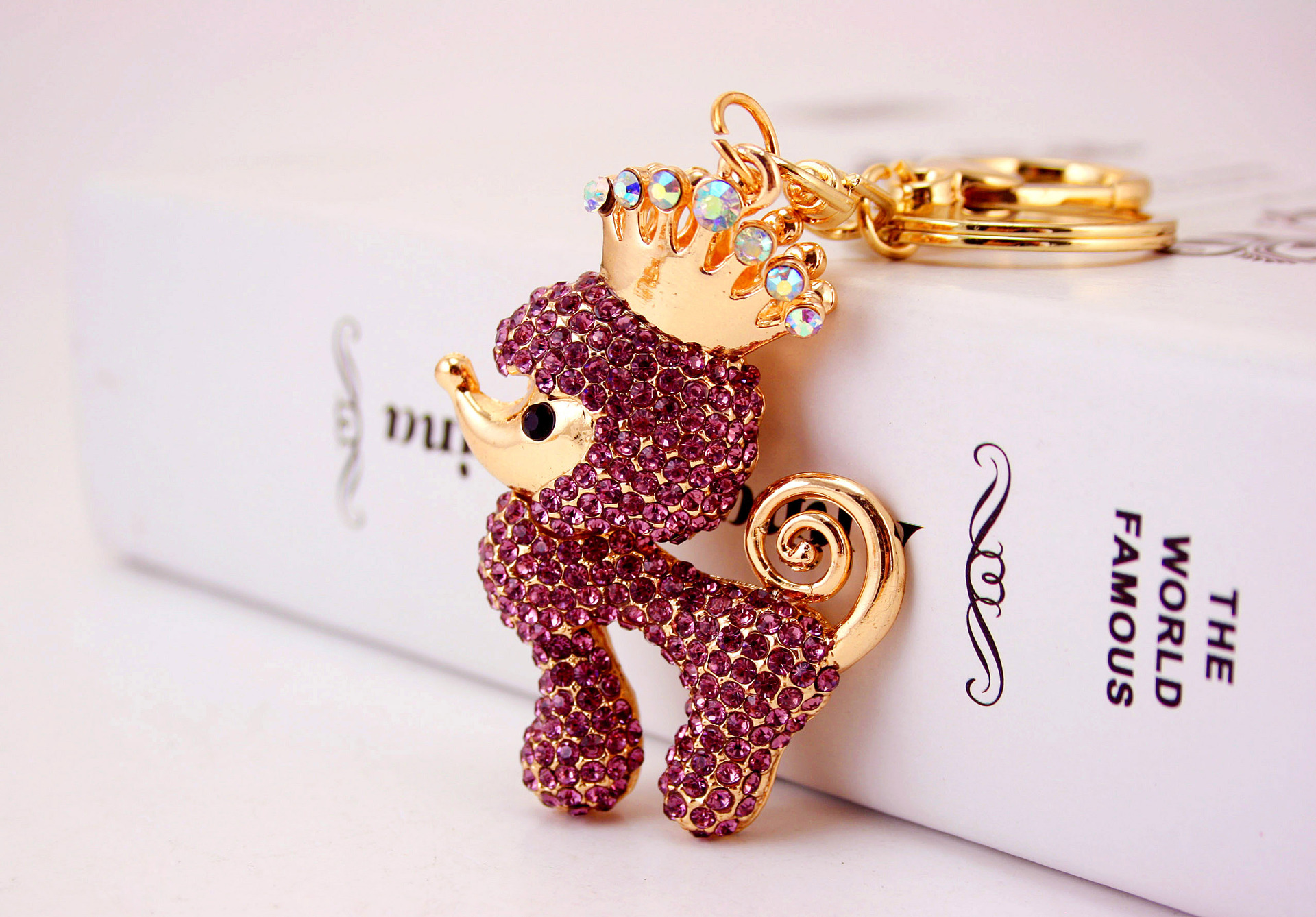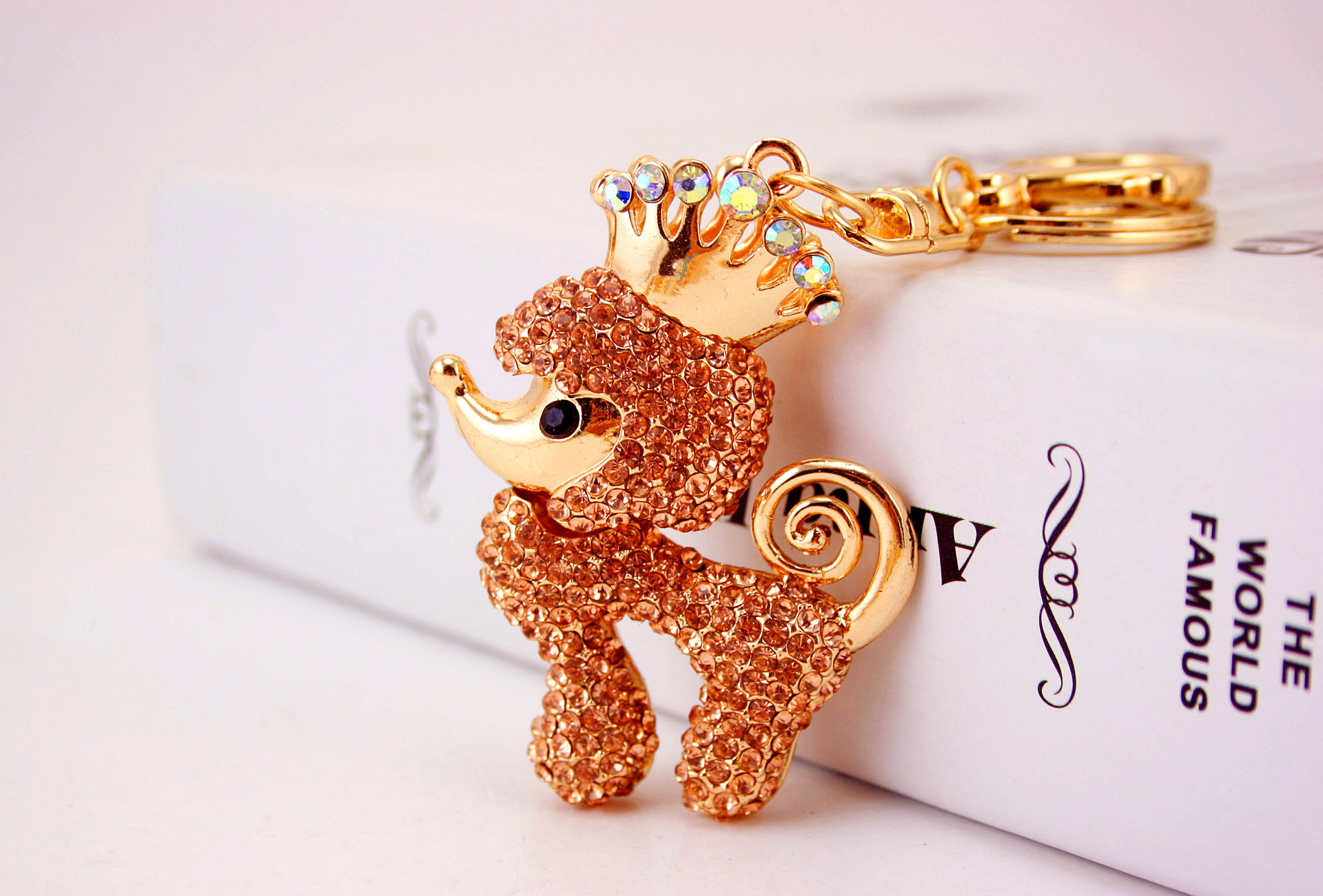 Poodle Dog Puppy Crystal Diamante Bag Charms Handbag Keyrings Pendant Key Chain