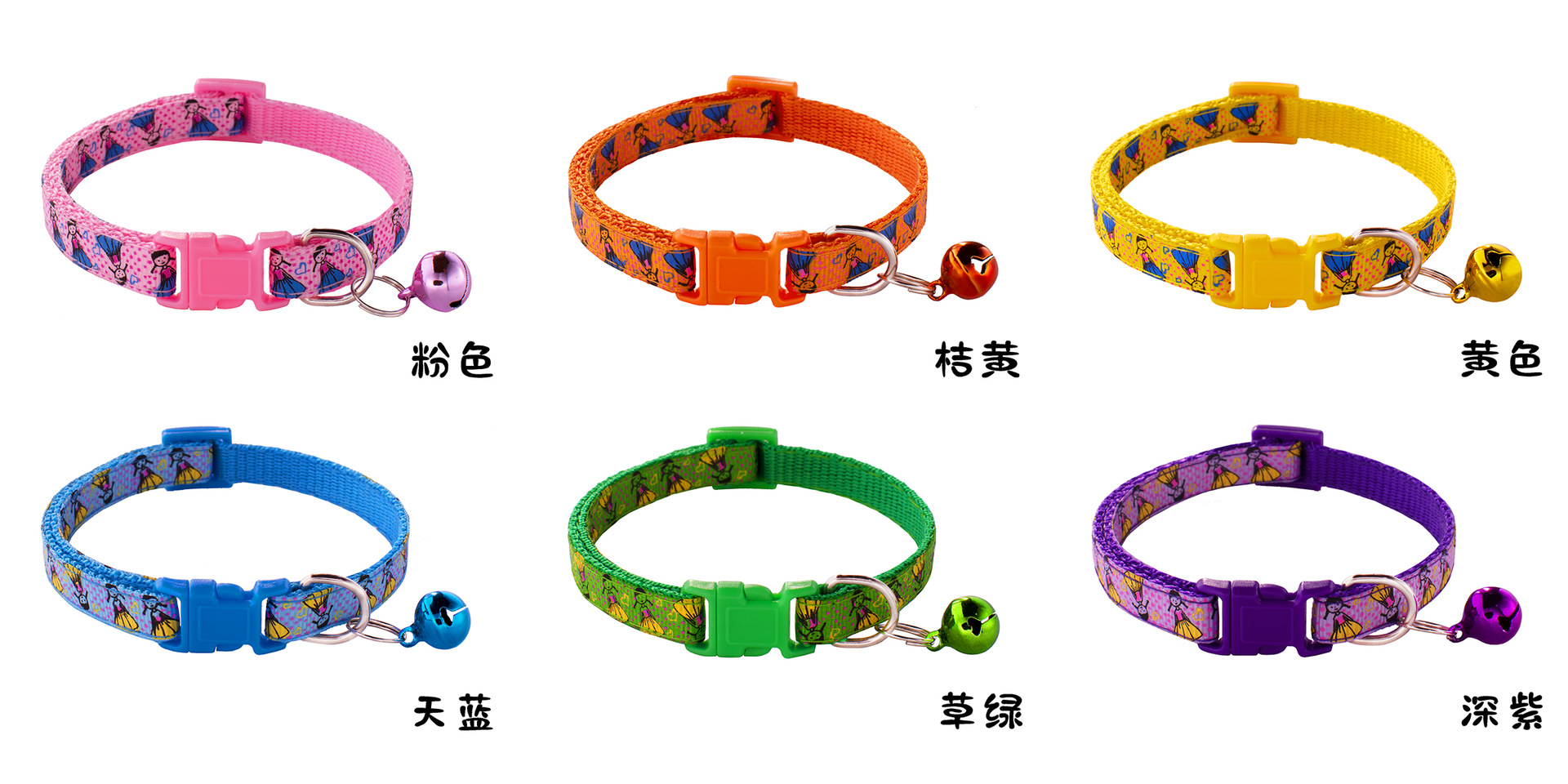 Pretty Little Girl Adjustable Kitten Cat Collar With Bell And Snap Buckle
