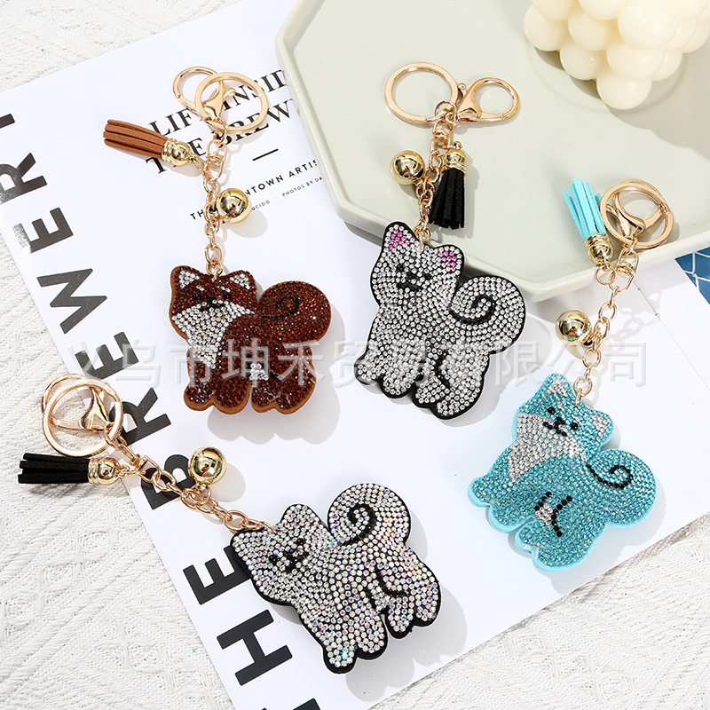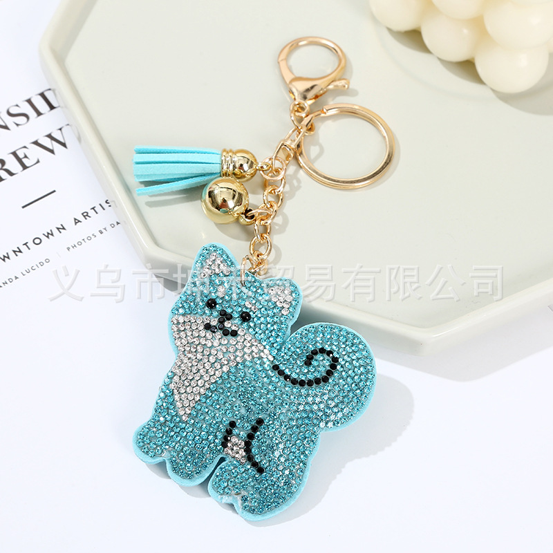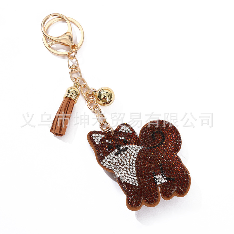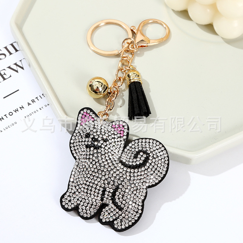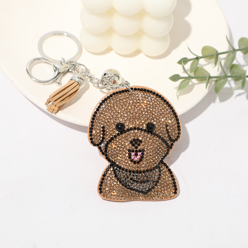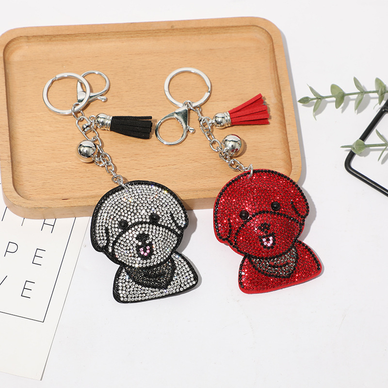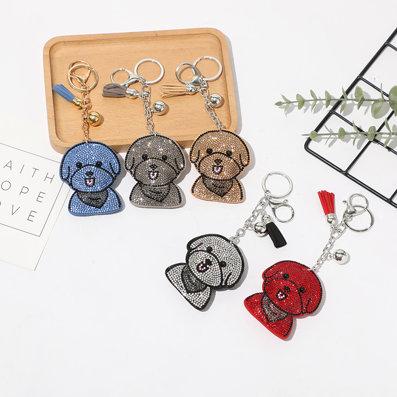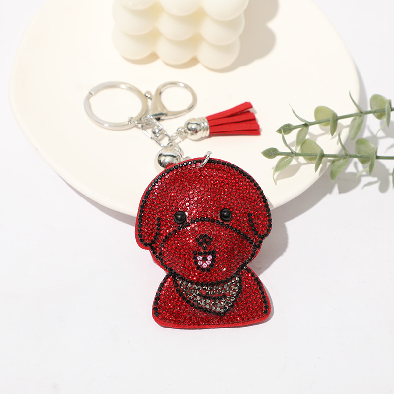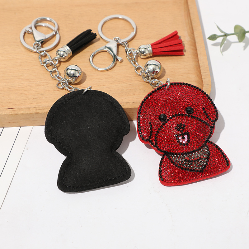 Details:Puppy Dog Crystal Diamante PU Leather Bag Charms Handbag Women Keyring Pendant