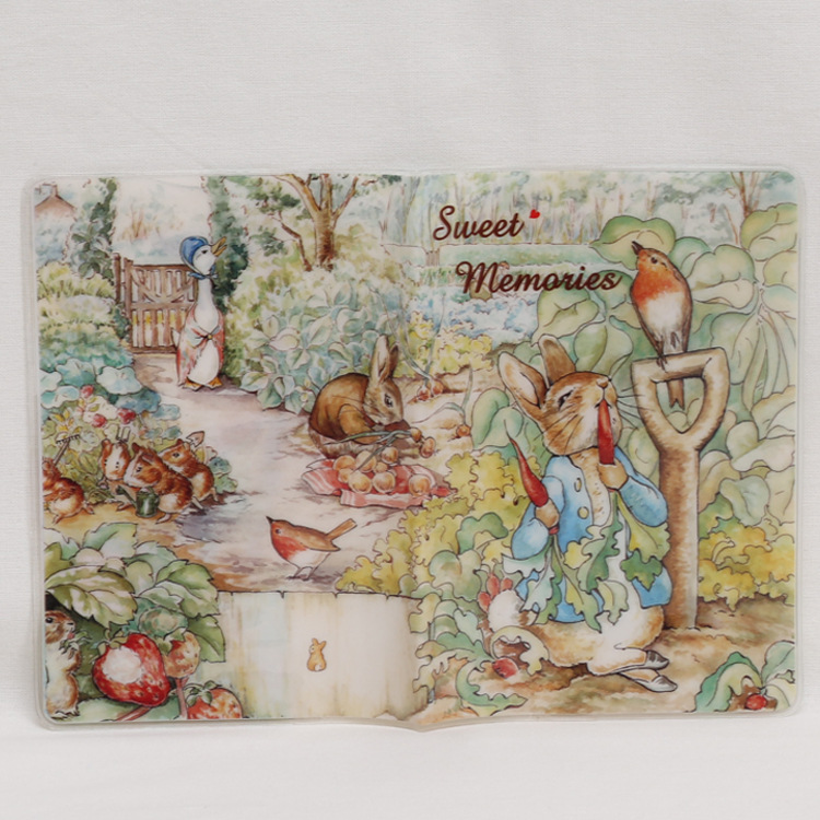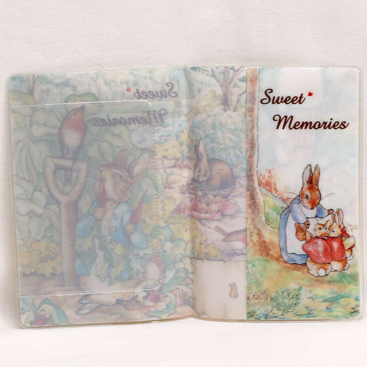 Very cute passport cover travel id holder with adroable rabbit and his garden animals friends including robin birds, hamsters, white duck etc.