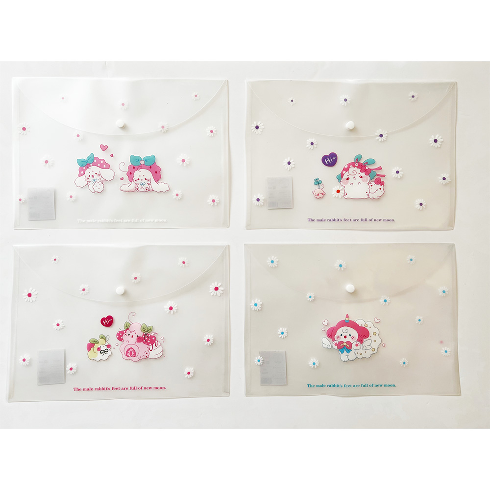 Rabbits And Flowers Fashion A4 Plastic Document Wallets File Folders