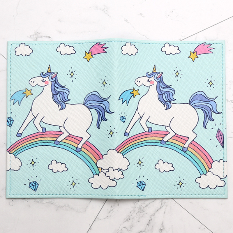 Rainbow Unicorn Cute Passport Cover Travel ID Holder Wallet Card Ticket Pouch
