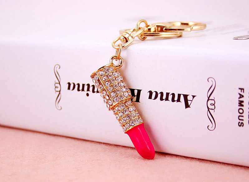 Red Lipstick Crystal Diamante Rhinestone Bag Charms Handbag Keyrings Pendant Key Chain