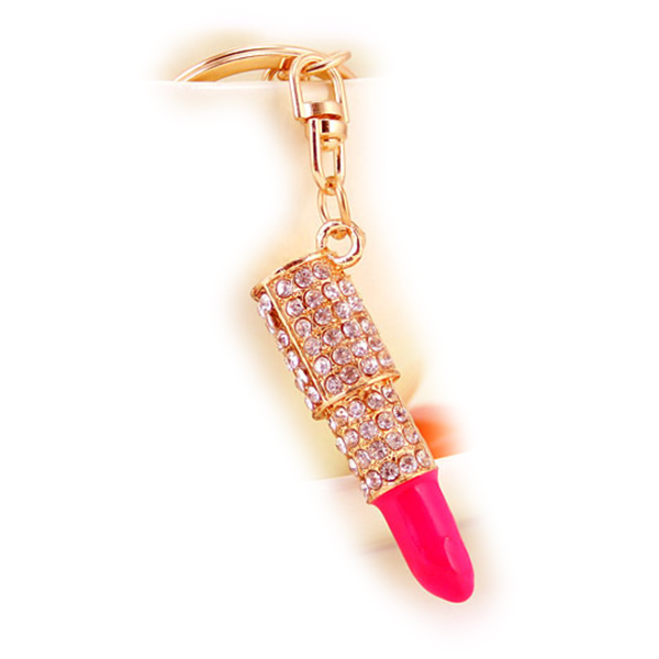 A small red lipstick with sparkling crystal diamante rhinestones. This bag charm / handbag keyring is a very unique gift for your loved one on special occassions.