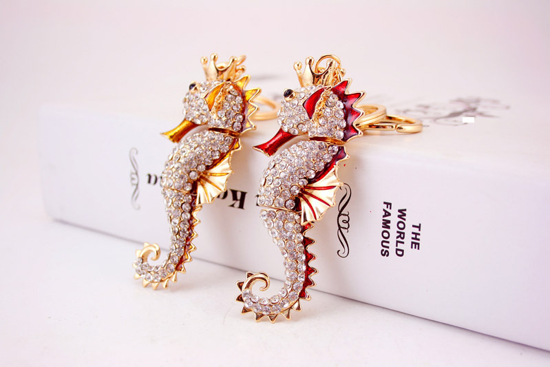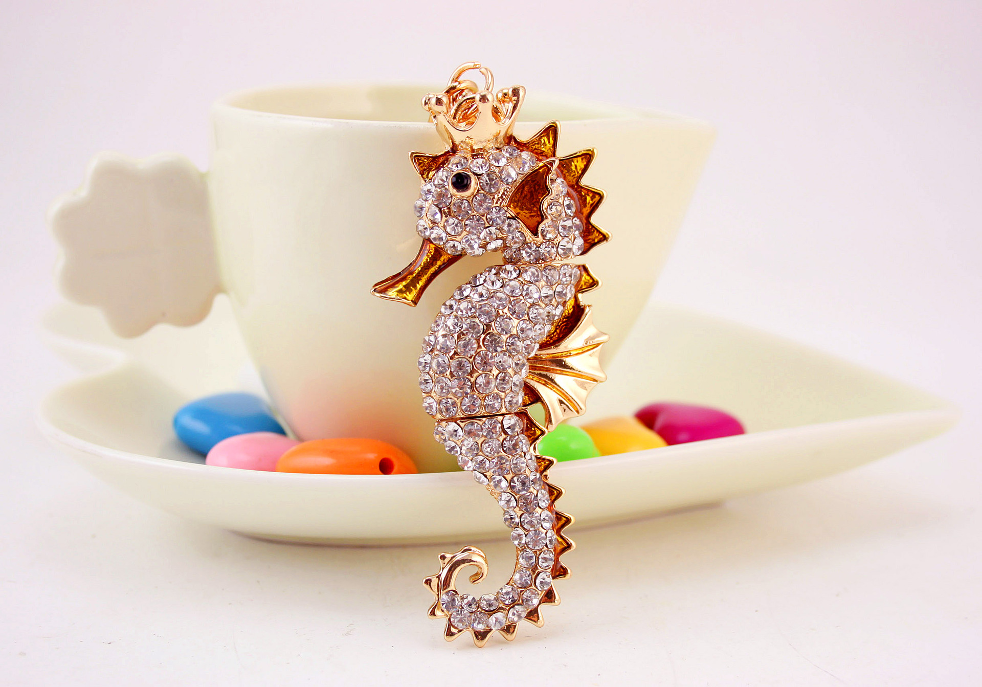 Details:Seahorse Sea Life Animal Crystal Diamante Rhinestone Bag Charms Handbag Keyrings Pendant Key Chain