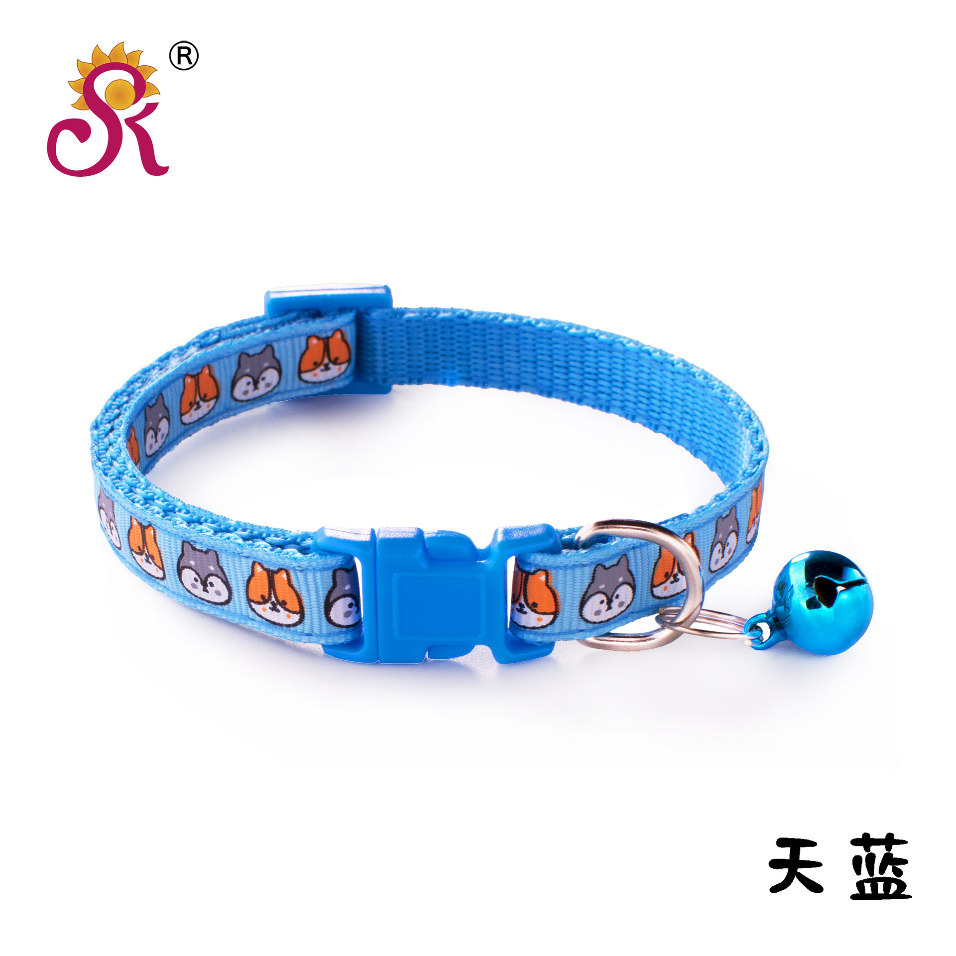 Shiba Inu Printing Adjustable Kitten Cat Collar With Bell And Snap Buckle