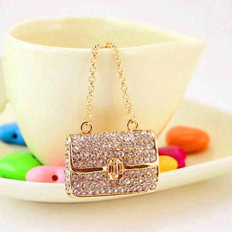Details:Silver Lady Handbag Shaped Crystal Diamante Bag Charms Handbag Keyring Pendant