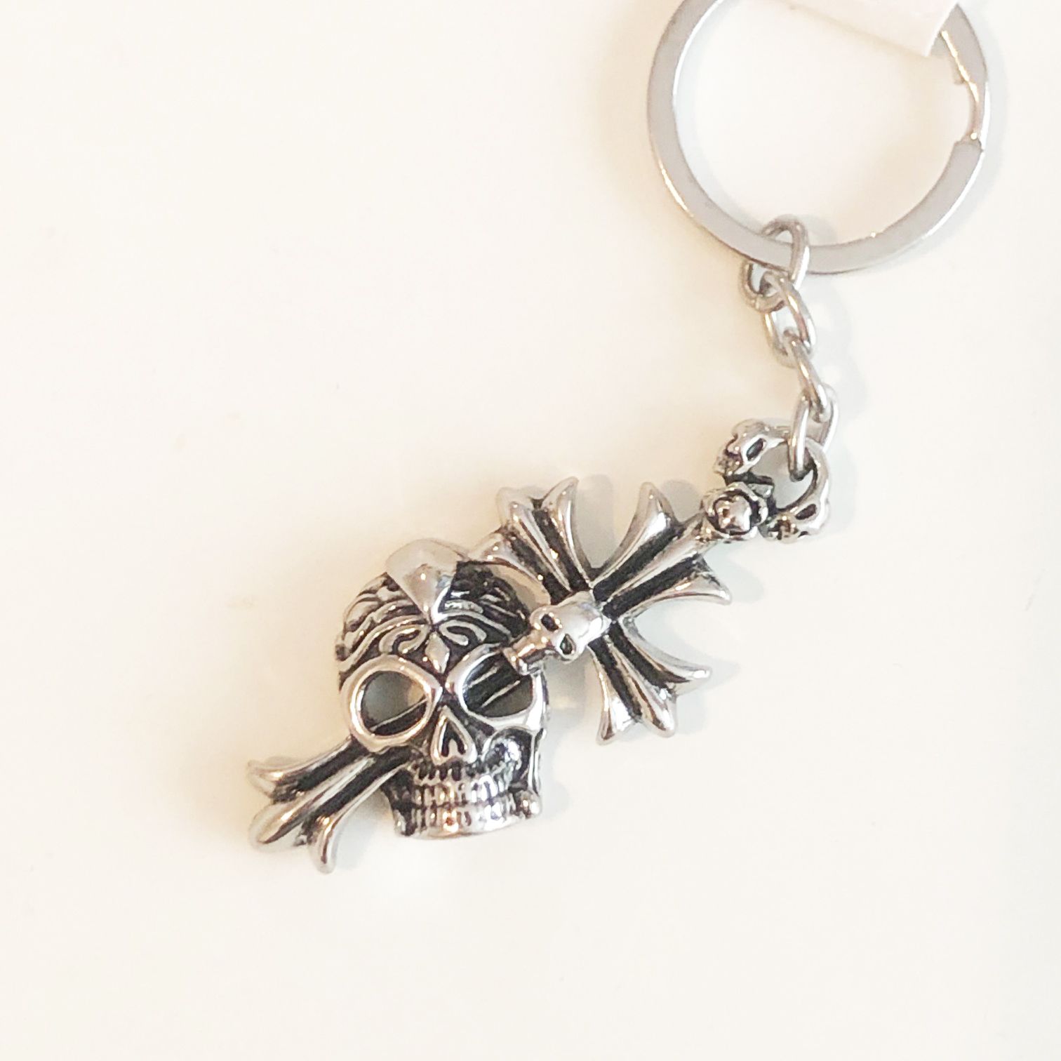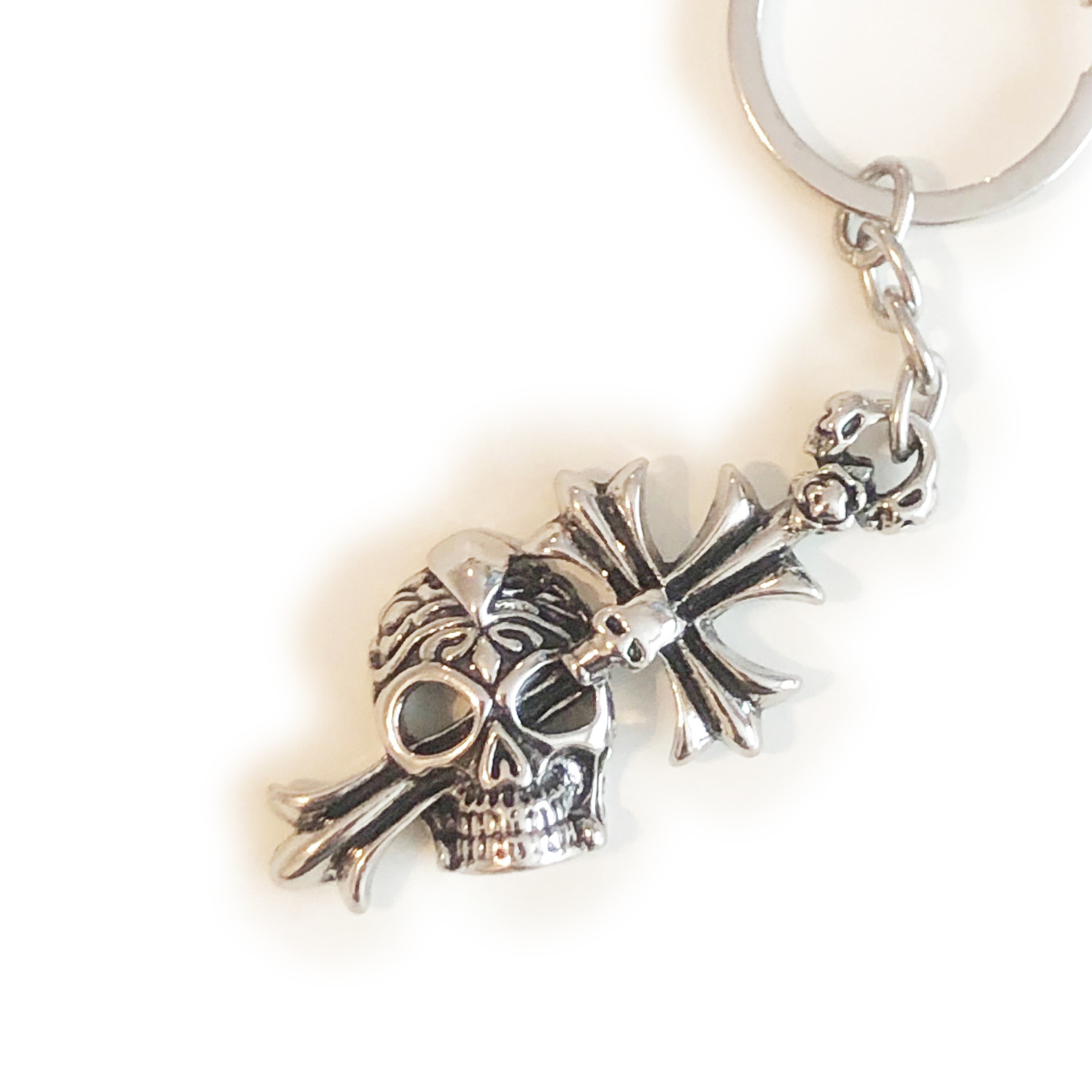 Silver Metal Fantasy Skeleton Skull Keyring Cool Key Chain Gift Keyfob Present