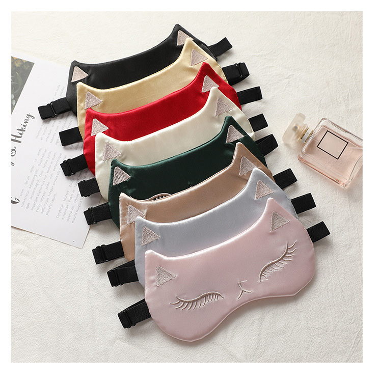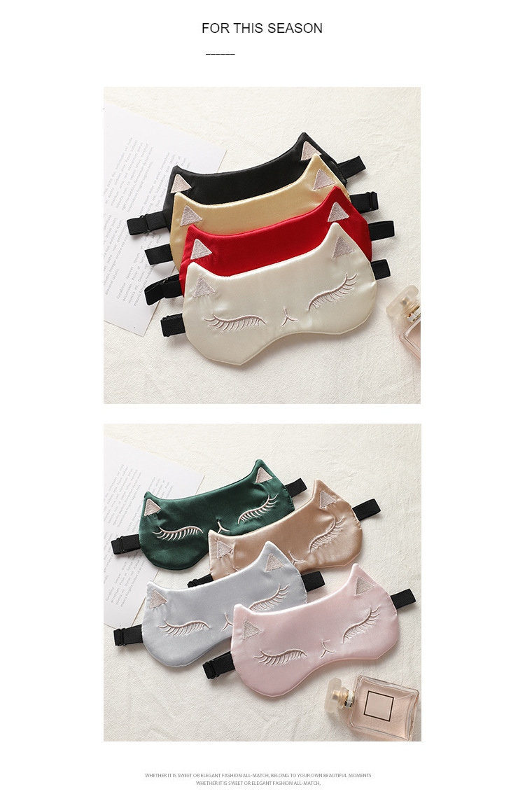 Soft Smooth Silk Cat Shaped Sleep Masks Eyeshade Eye Masks Travel Nap Shift Work