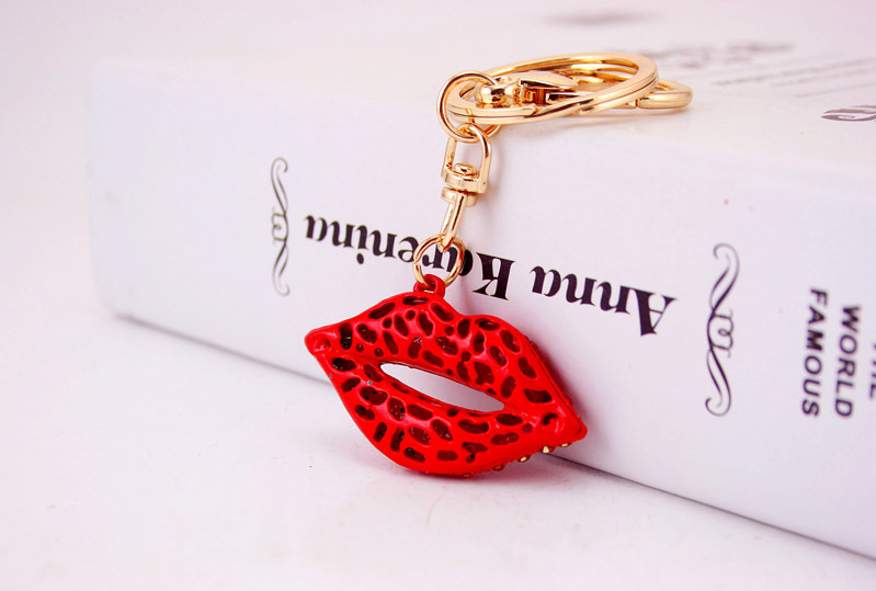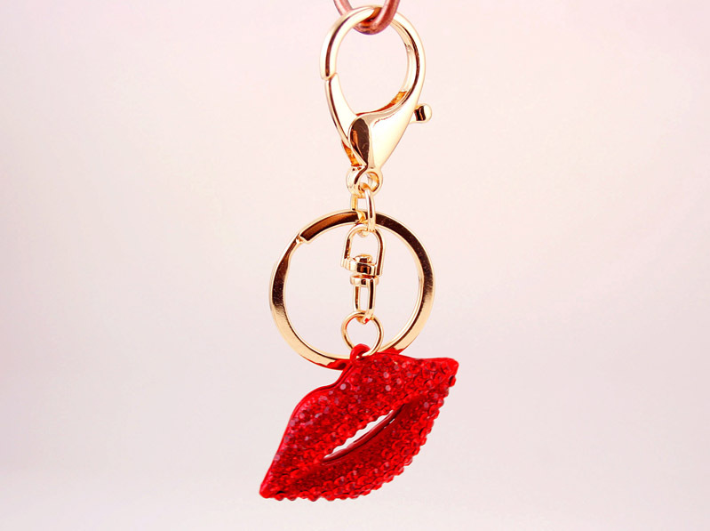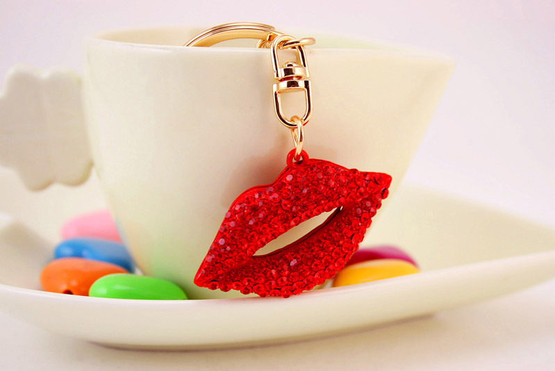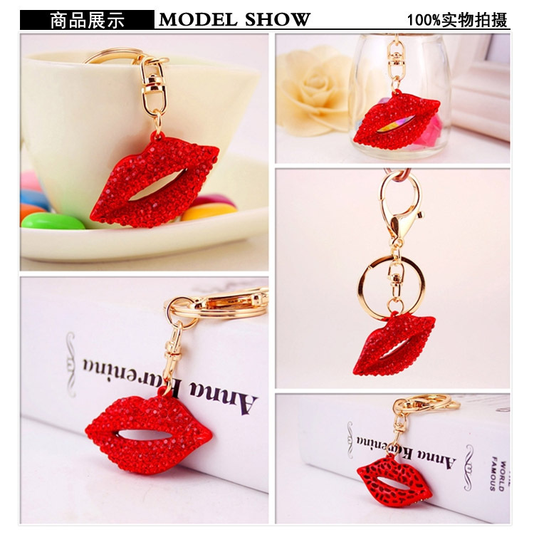 Sparkling diamante red lips bag charm handbag pendant keyring key chain