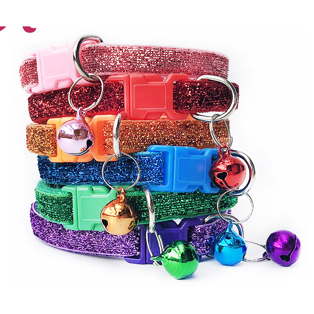 Sparkling Glitter Cat Collar Adjustable Kitten Puppy Dog Pet Bell Snap Buckle