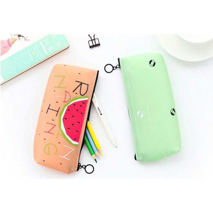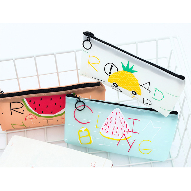 Summer Fruits Cute Plastic Pencil Cases Cosmetics Make Up Bags Pen Pouches