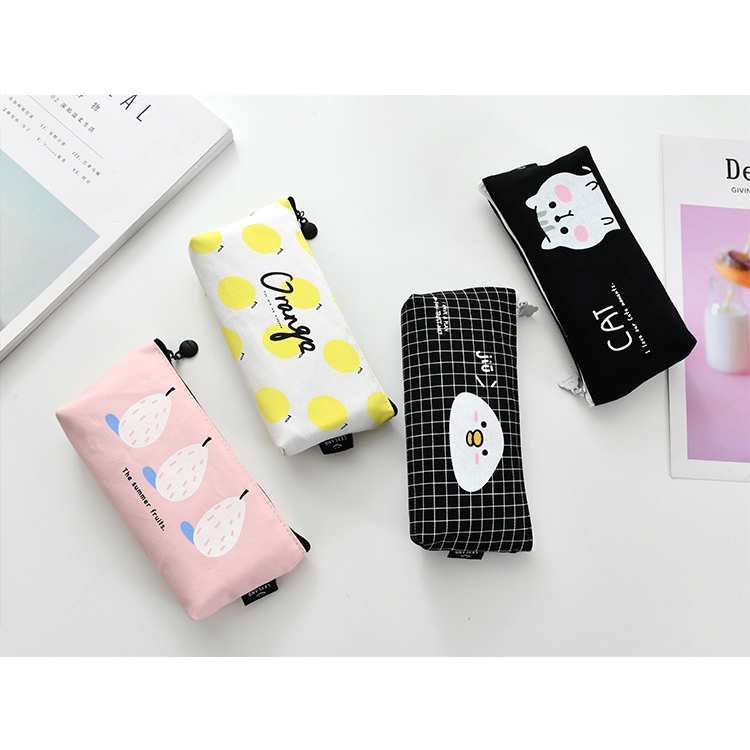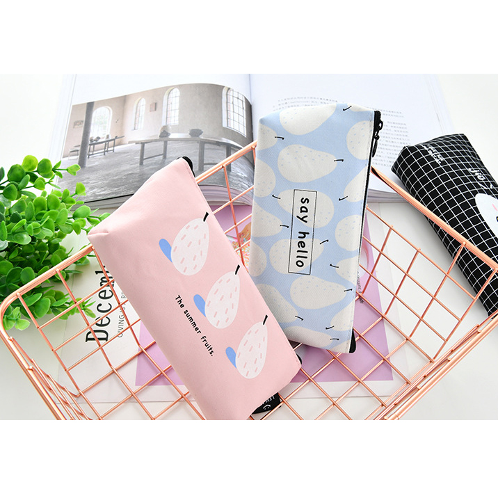 Details:Summer Fruits Lemon Pear Orange Canvas Pencil Cases Cosmetics Make Up Bags
