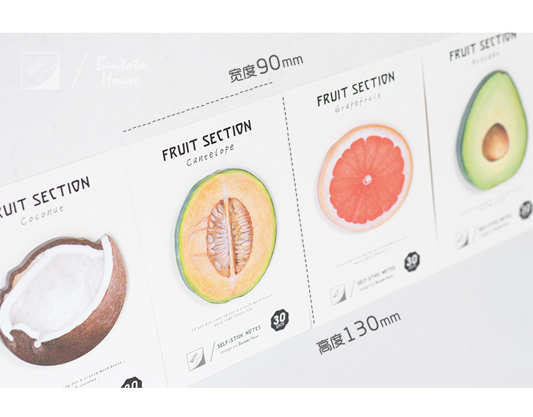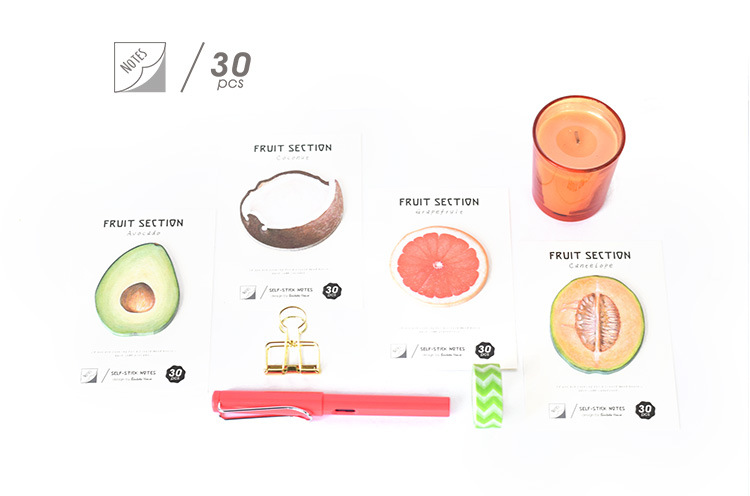 Very cute sticky notes pad in the novelty designs of summer fruits, including coconut, melon, avocado and grapefruit.