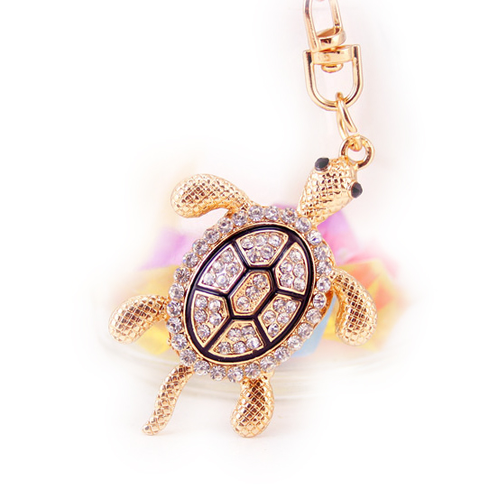 A very attractive design in tortoise/turtle with sparkling crystal diamante rhinestones. This bag charm / handbag keyring is a very unique gift for your loved one on special occasions.