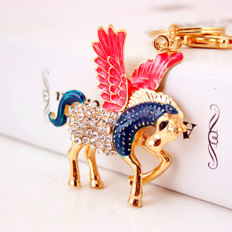 Unicorn Pegasus Winged Horse Crystal Diamante Bag Charms Handbag Keyring Pendant