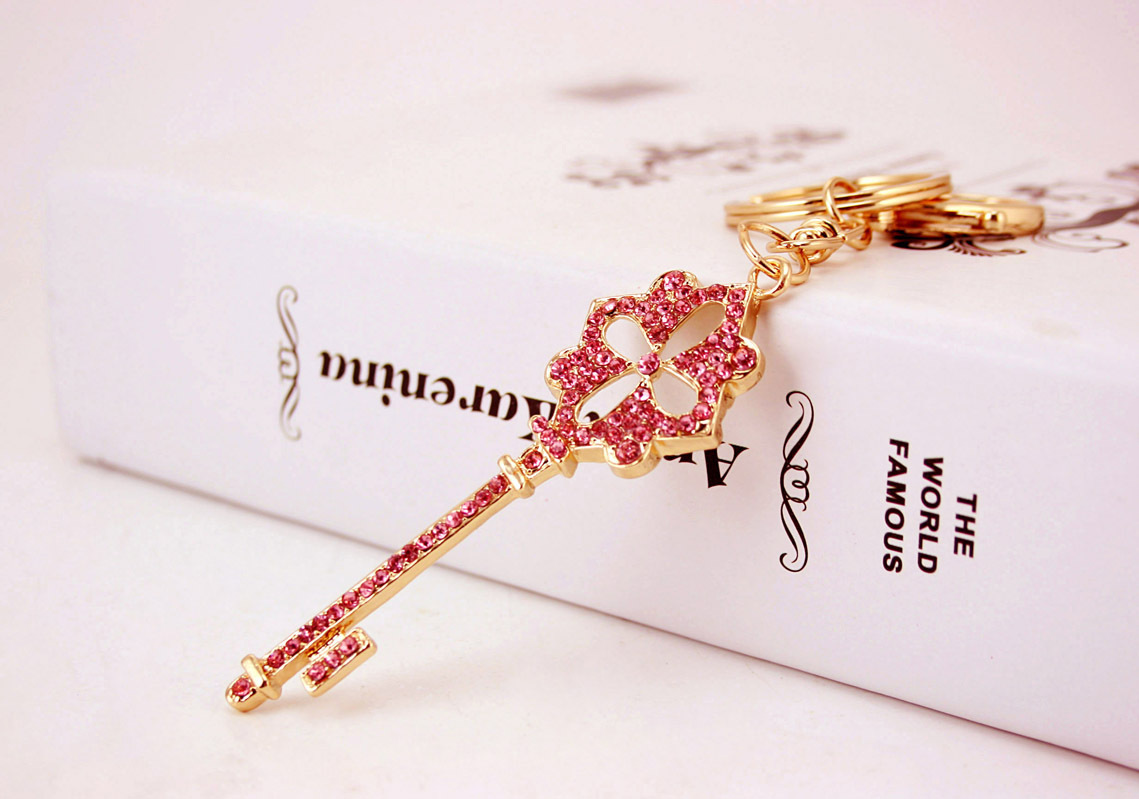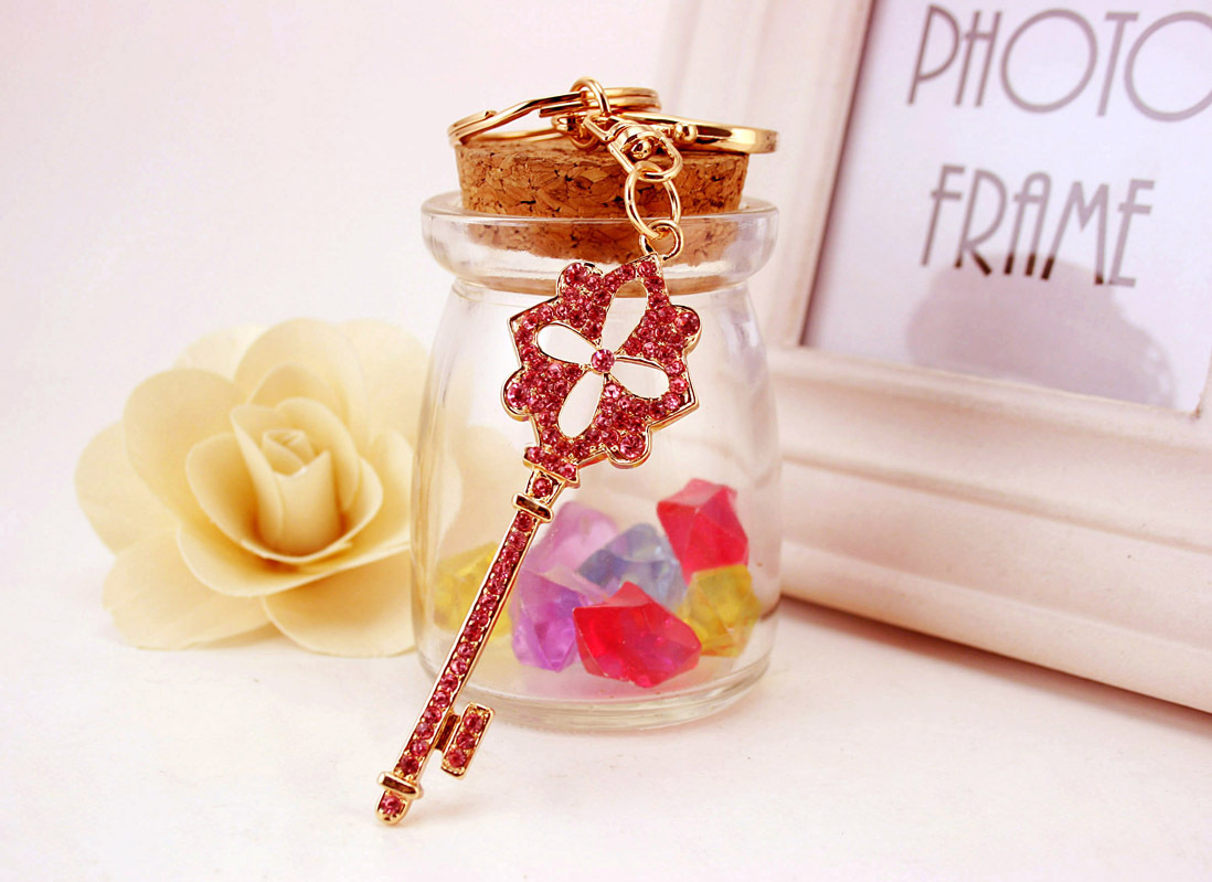 Details:Vintage Key Shape Flower Crystal Diamante Rhinestone Bag Charms Handbag Keyrings Pendant Key Chain