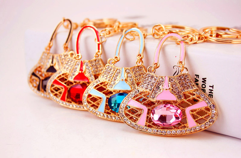 Vintage Style Handbag Shape Diamante Rhinestone Bag Charm Pendant Keyring