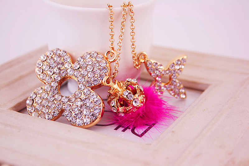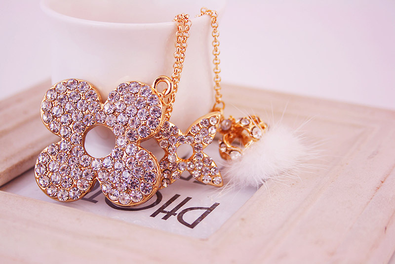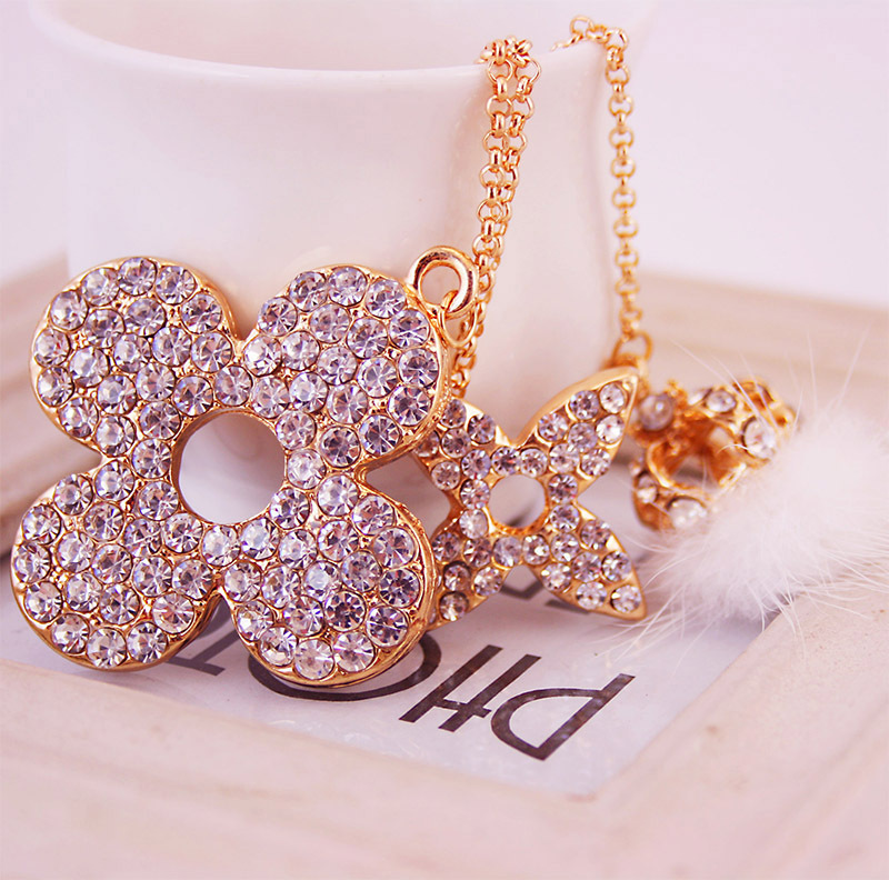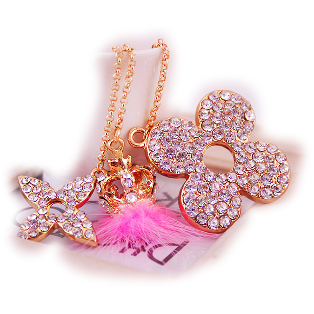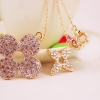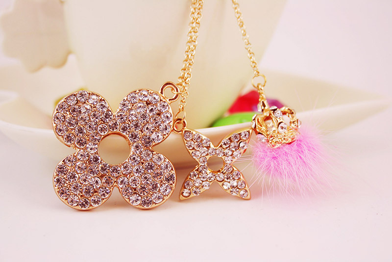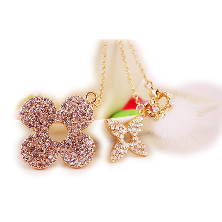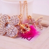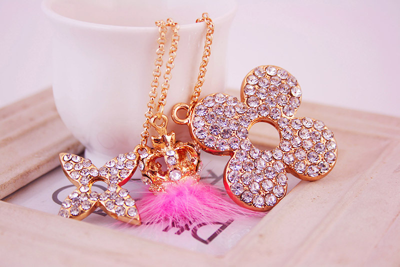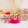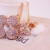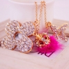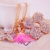 Details:White Clover With Fur Pom Crystal Diamante Bag Charms Handbag Keyrings Pendant