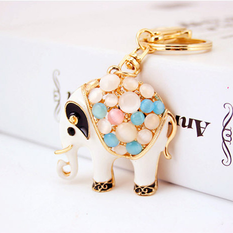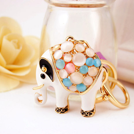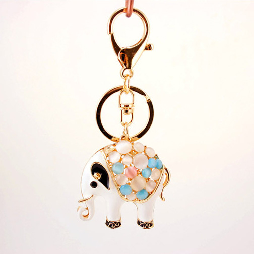 White Elephant Animal Crystal Diamante Rhinestone Bag Charms Handbag Keyrings Pendant Key Chain