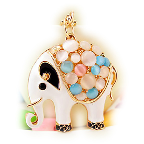 A very attractive design in white elephant with sparkling crystal diamante rhinestones. This bag charm / handbag keyring is a very unique gift for your loved one on special occasions.