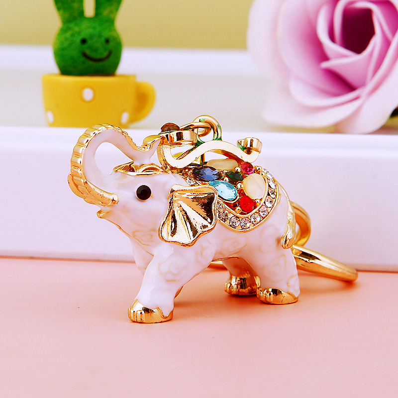 White Gold Elephant Colourful Diamante Rhinestone Bag Charms Handbag Keyring