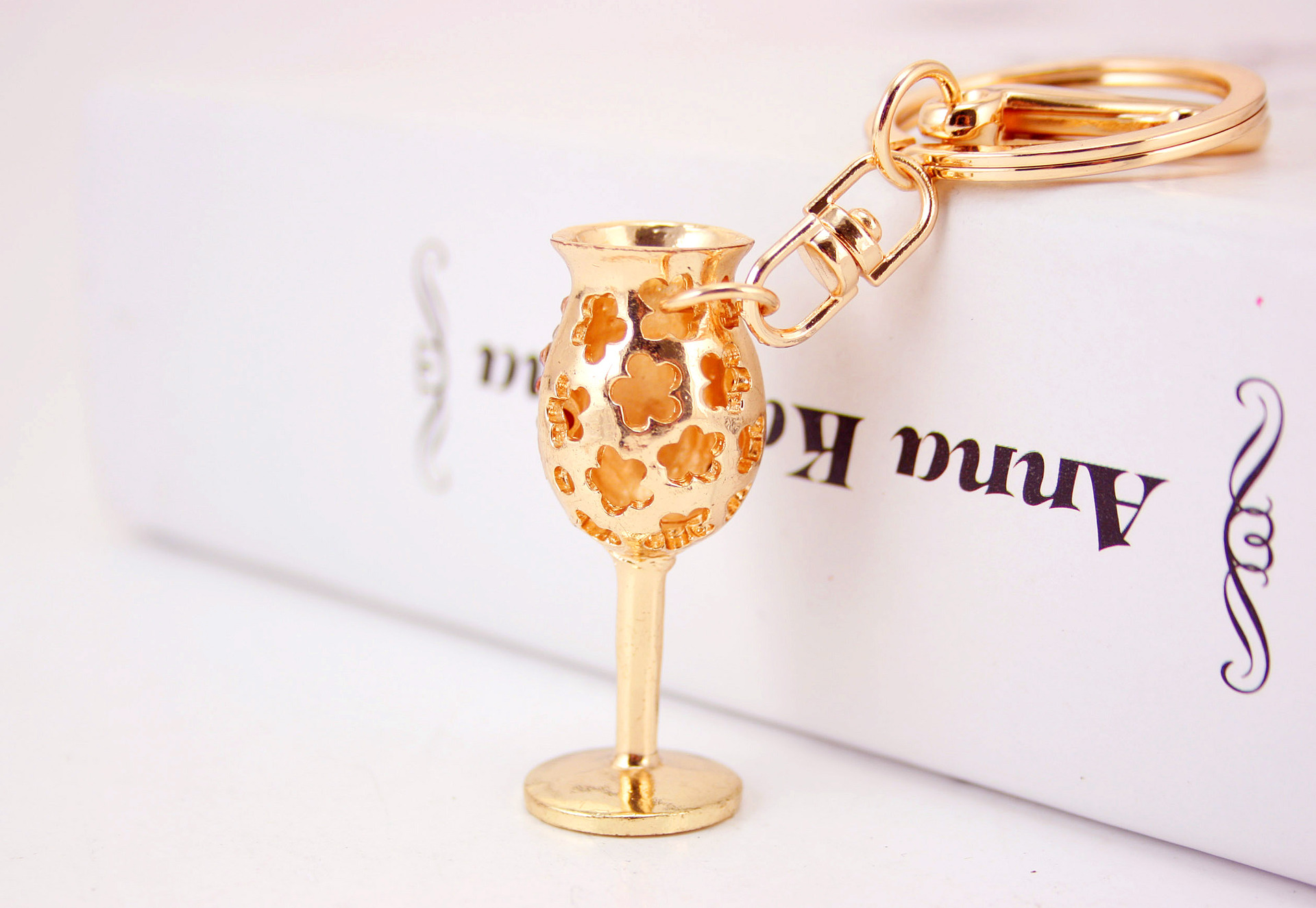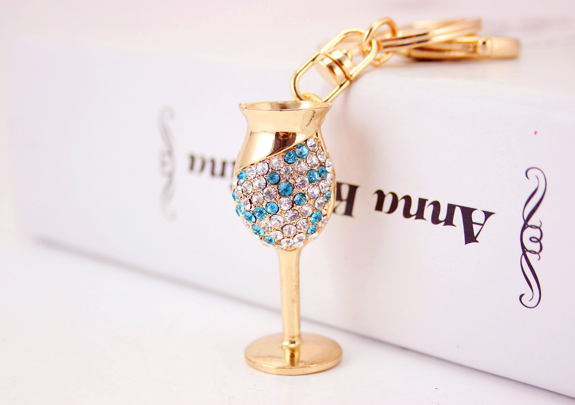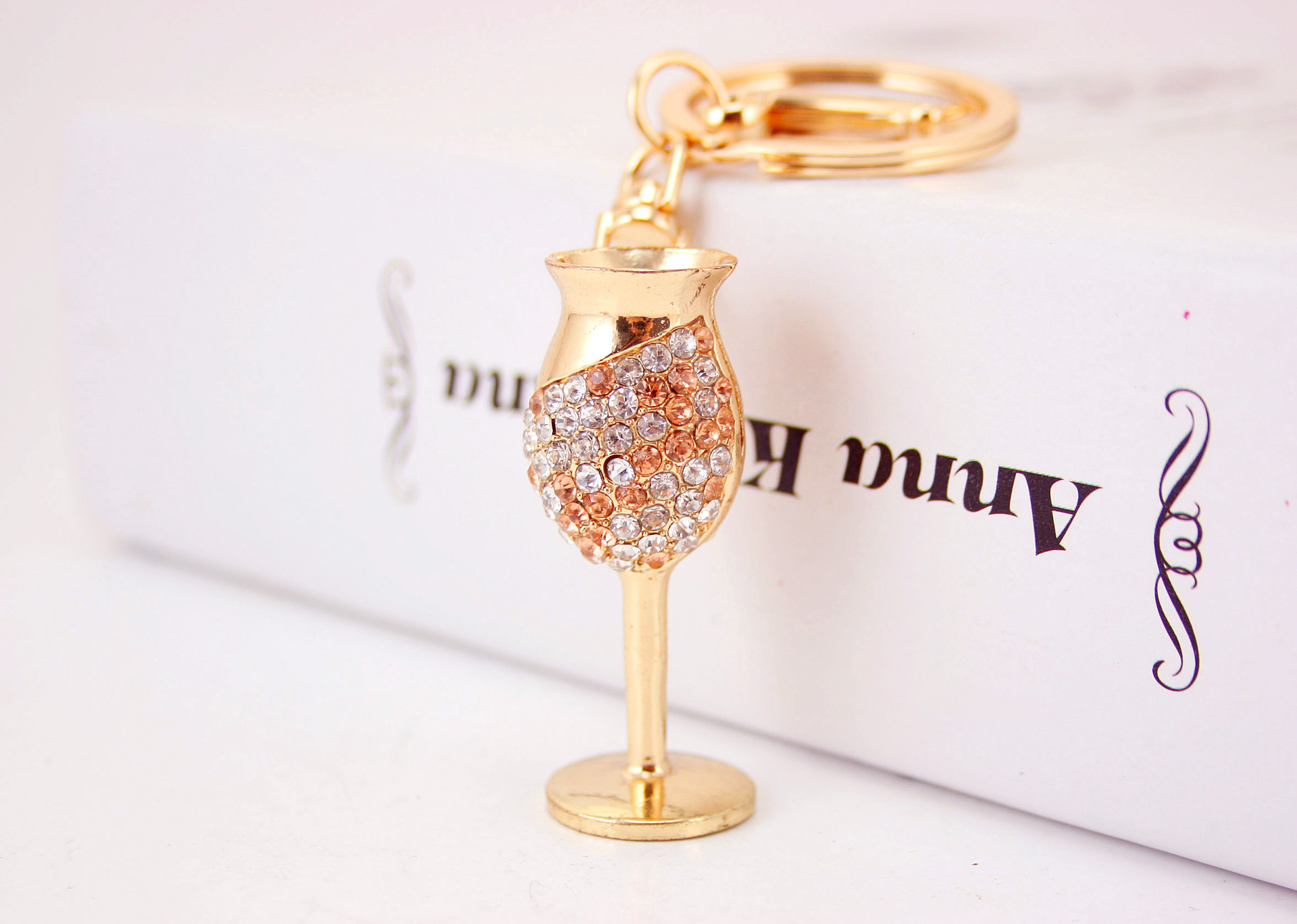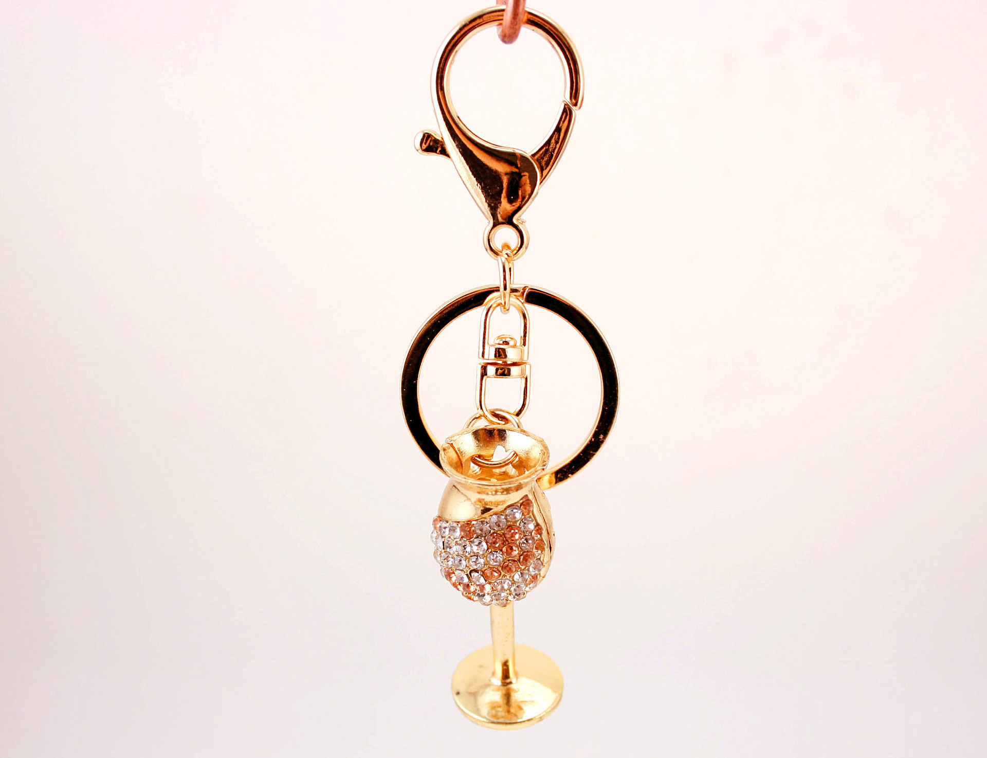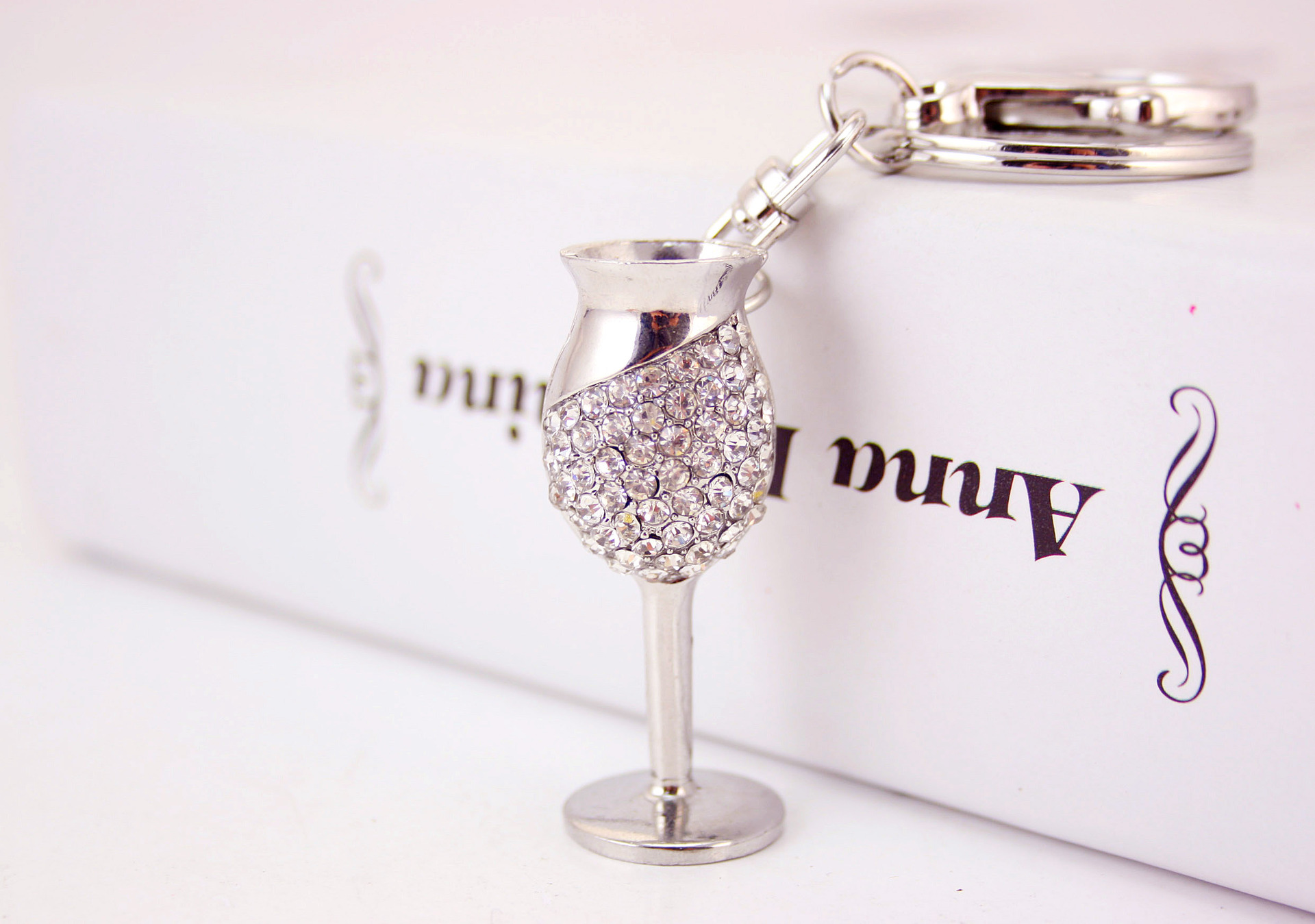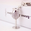 Wine Goblet Flute Glasses Crystal Diamante Bag Charm Handbag Keyring Pendant